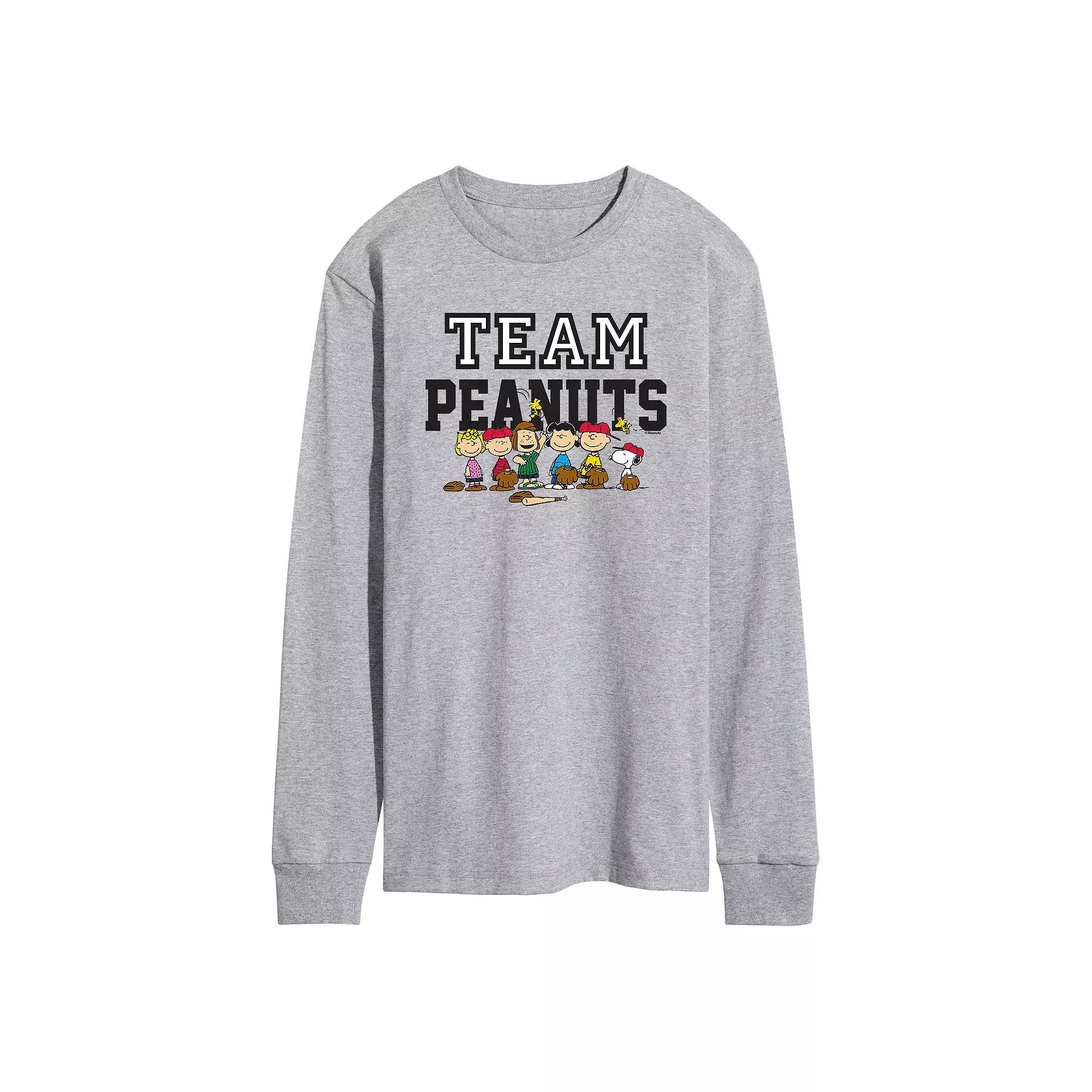 Show off your love for all things Peanuts in this Officially Licensed long sleeve t-shirt.This adult Long sleeve t-shirt is lightweight, soft, and durable; perfect for everyday wear! | Peanuts Men's Team Long Sleeve Graphic T-Shirt, Grey, Medium