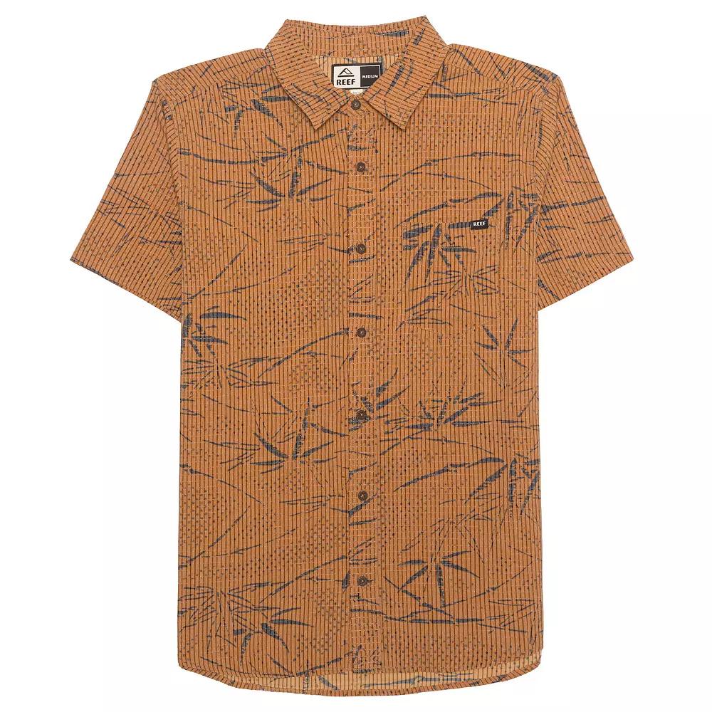 Elevate his casual wardrobe with the stylish woven top from REEF, offering an easy-going fit that pairs seamlessly with shorts or jeans. Its relaxed design and versatile style make it perfect for everything from beach days to backyard barbecues, adding a touch of laid-back sophistication to any outfit. Click on this MENS GUIDE to find the perfect fit and more!Elevate his casual wardrobe with the stylish woven top from REEF, offering an easy-going fit that pairs seamlessly with shorts or jeans. Its relaxed design and versatile style make it perfect for everything from beach days to backyard barbecues, adding a touch of laid-back sophistication to any outfit. Click on this MENS GUIDE to find the perfect fit and more!FEATURES Button-front Short sleeve 1 chest pocketFIT & SIZING Classic fitFABRIC & CARE Cotton, viscose Machine wash Imported Color: Brown. Gender: male. Age Group: adult.