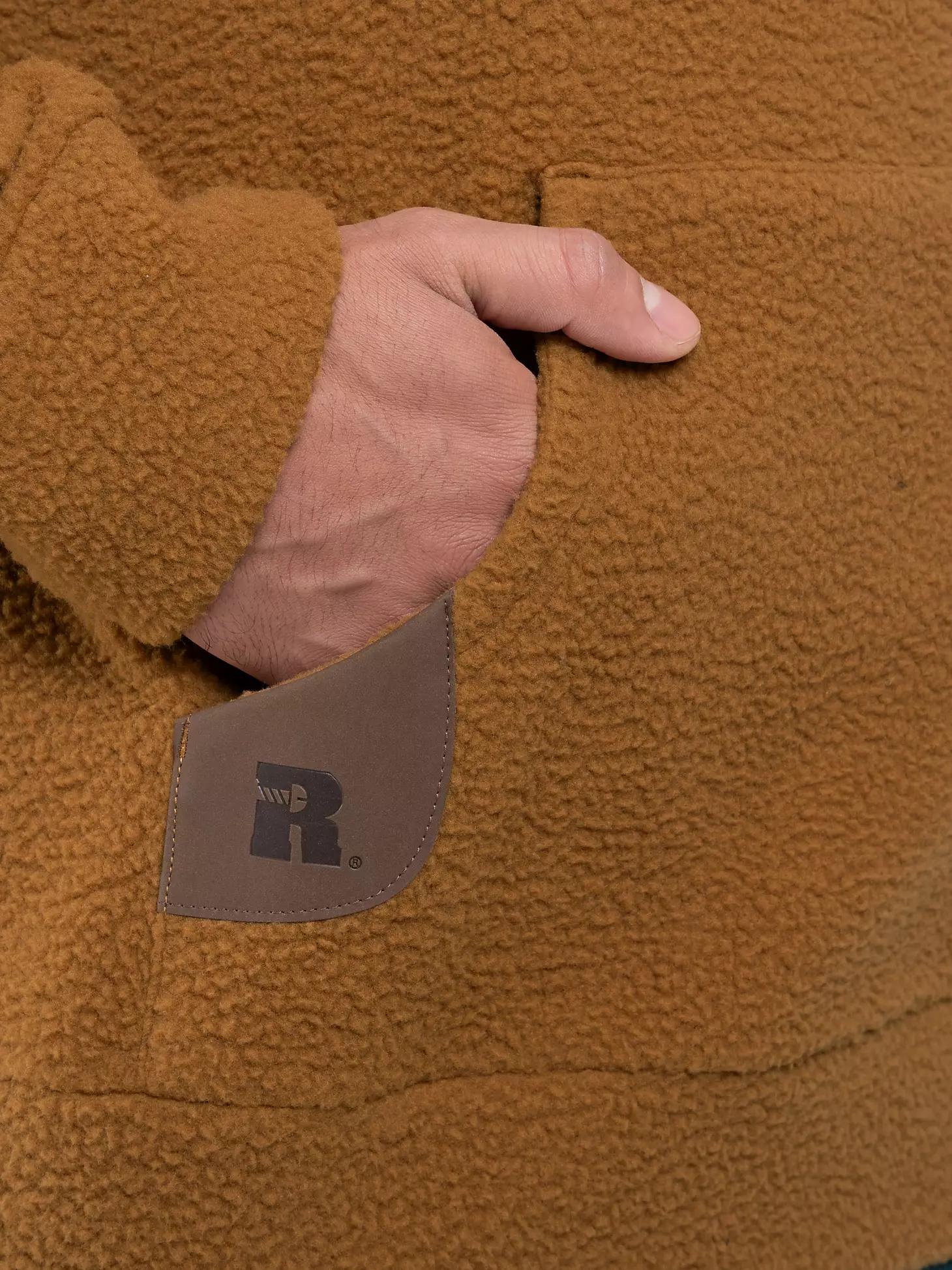 Stay warm and comfortable in the Wrangler RIGGS Workwear® Men’s Sherpa Pullover Hoodie. Made with soft sherpa fleece and a jersey-lined hood, this hoodie traps heat while keeping you comfortable on the job. Features include a reinforced kangaroo pocket, hand warmer, media pocket, and a durable tape measure patch. Designed for long workdays or weekends outdoors.