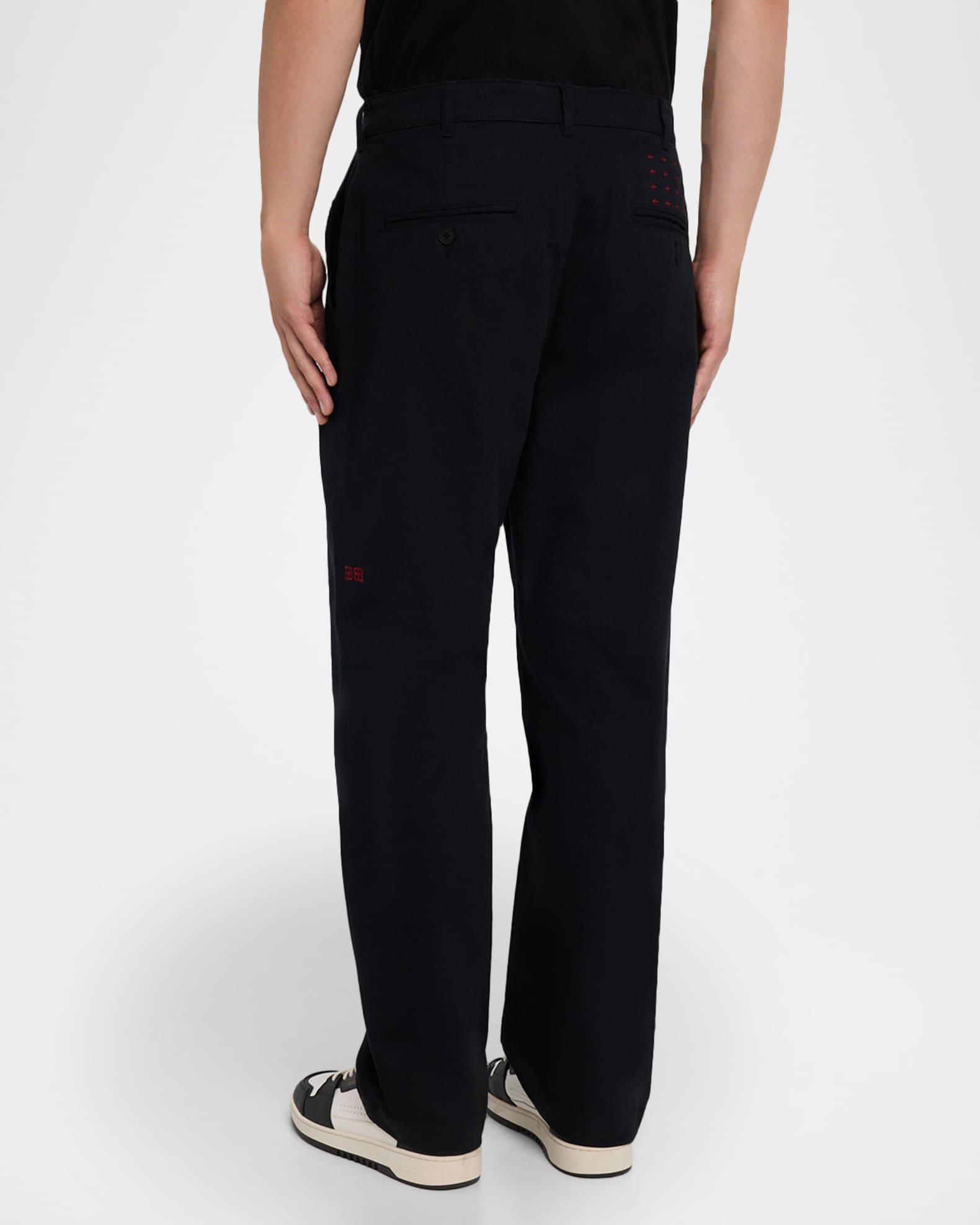 Ksubi "Rival" chino pants are crafted from premium cotton. Contrast T-box and 4x4 cross embroidery on back Regular rise Side pockets; back welt pockets Button/zip fly; belt loops Straight legs Full length Cotton Machine wash cold, wash inside out Imported