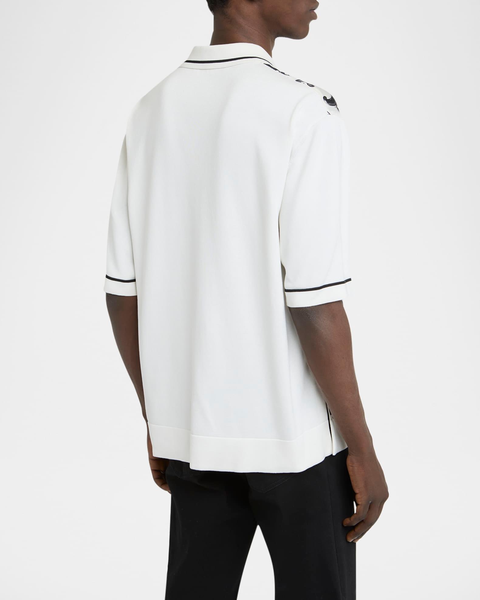 Dolce&Gabbana casual button-down shirt in a lustrous silk blend showcasing a bold Majolica print Stripe trim on the collar and cuffs Spread collar Button placket Short sleeves Vented sides Silk/cotton/spandex Made in Italy
