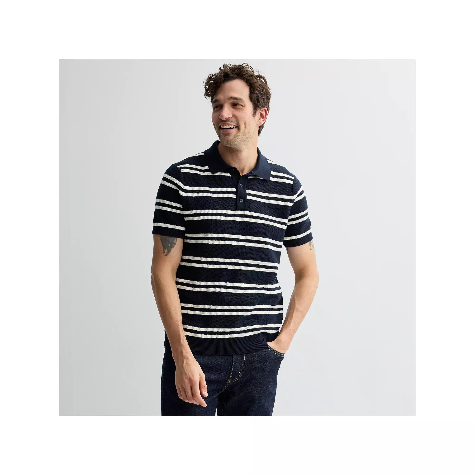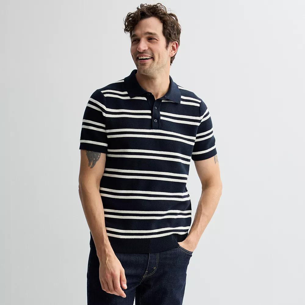 You're sure to love this men's short sleeve nautical striped sweater polo from Sonoma Goods For Life. Click on this MEN'S GUIDE to find the perfect fit and more!You're sure to love this men's short sleeve nautical striped sweater polo from Sonoma Goods For Life. Click on this MEN'S GUIDE to find the perfect fit and more!FEATURES Button-front polo neckline Short sleeves Ribbed hem Knit constructionFABRIC & CARE Cotton Machine wash - delicate Imported Color: Navy White Stripe. Gender: male. Age Group: adult.