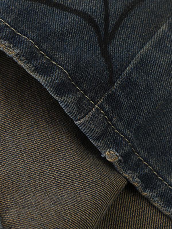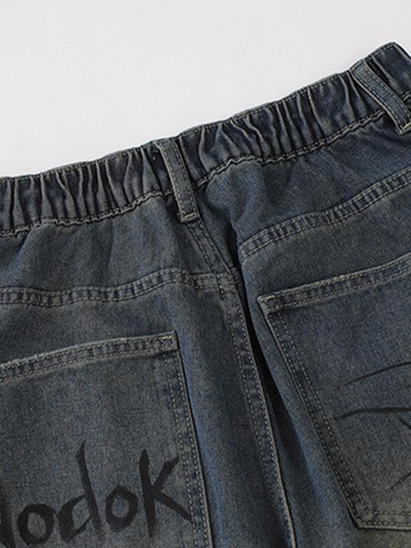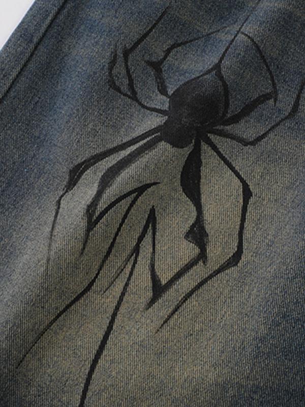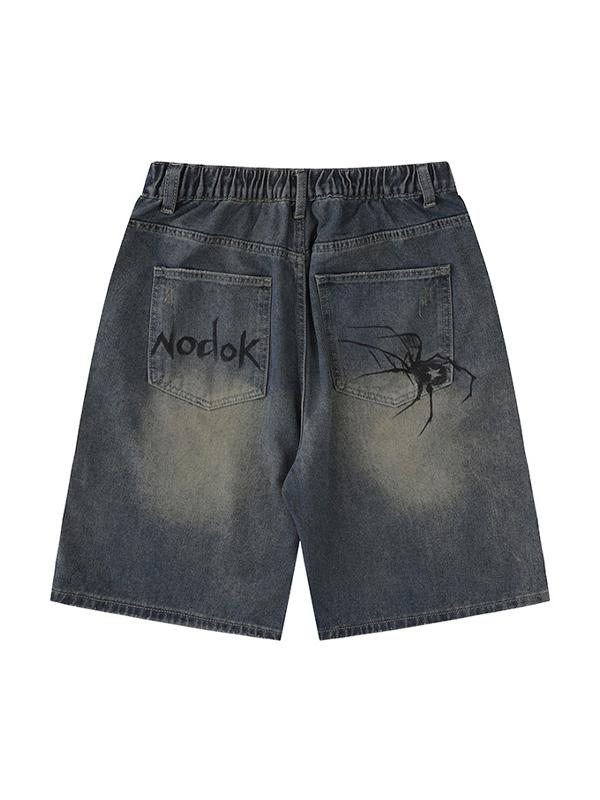 Men'S Spider Print Loose Casual Denim Shorts