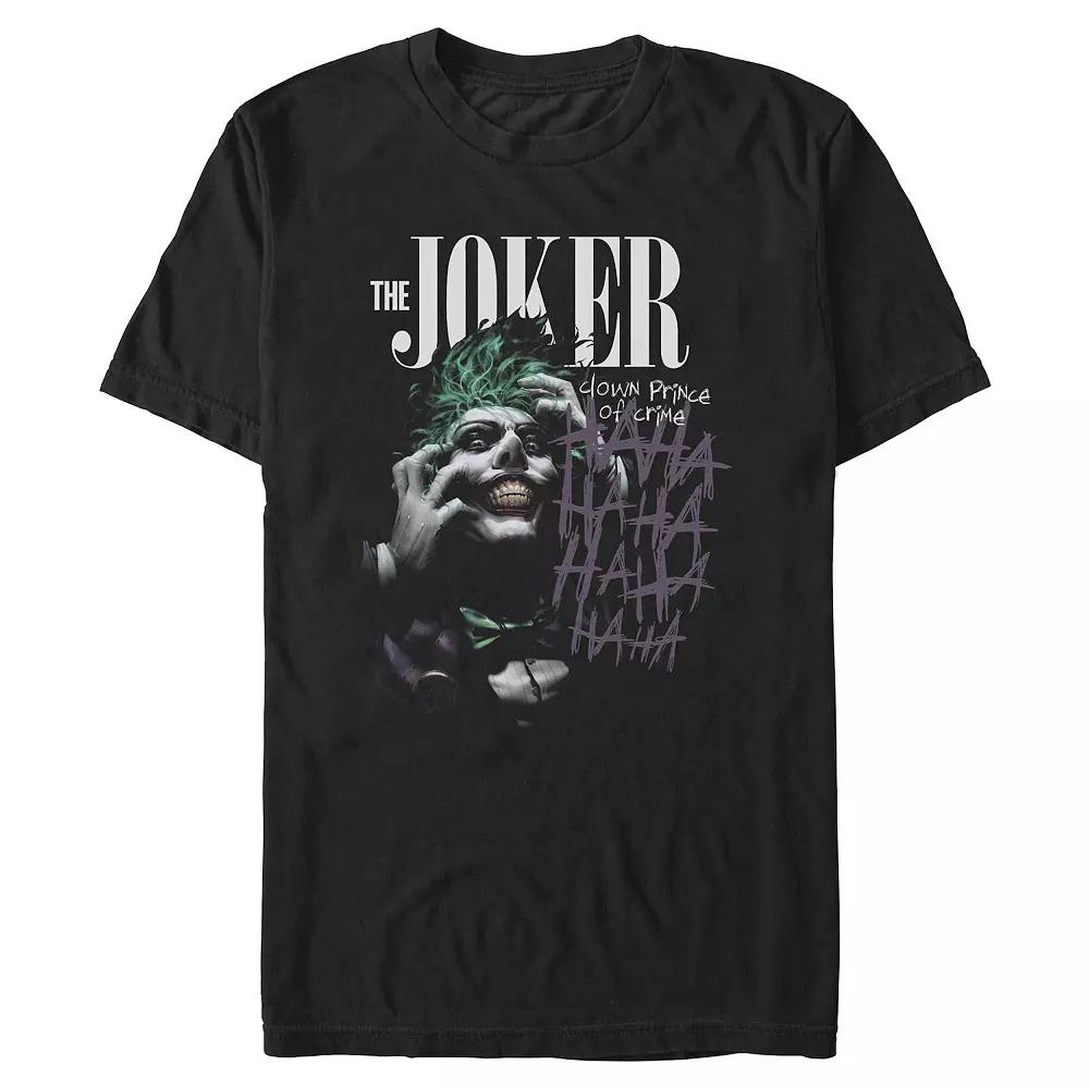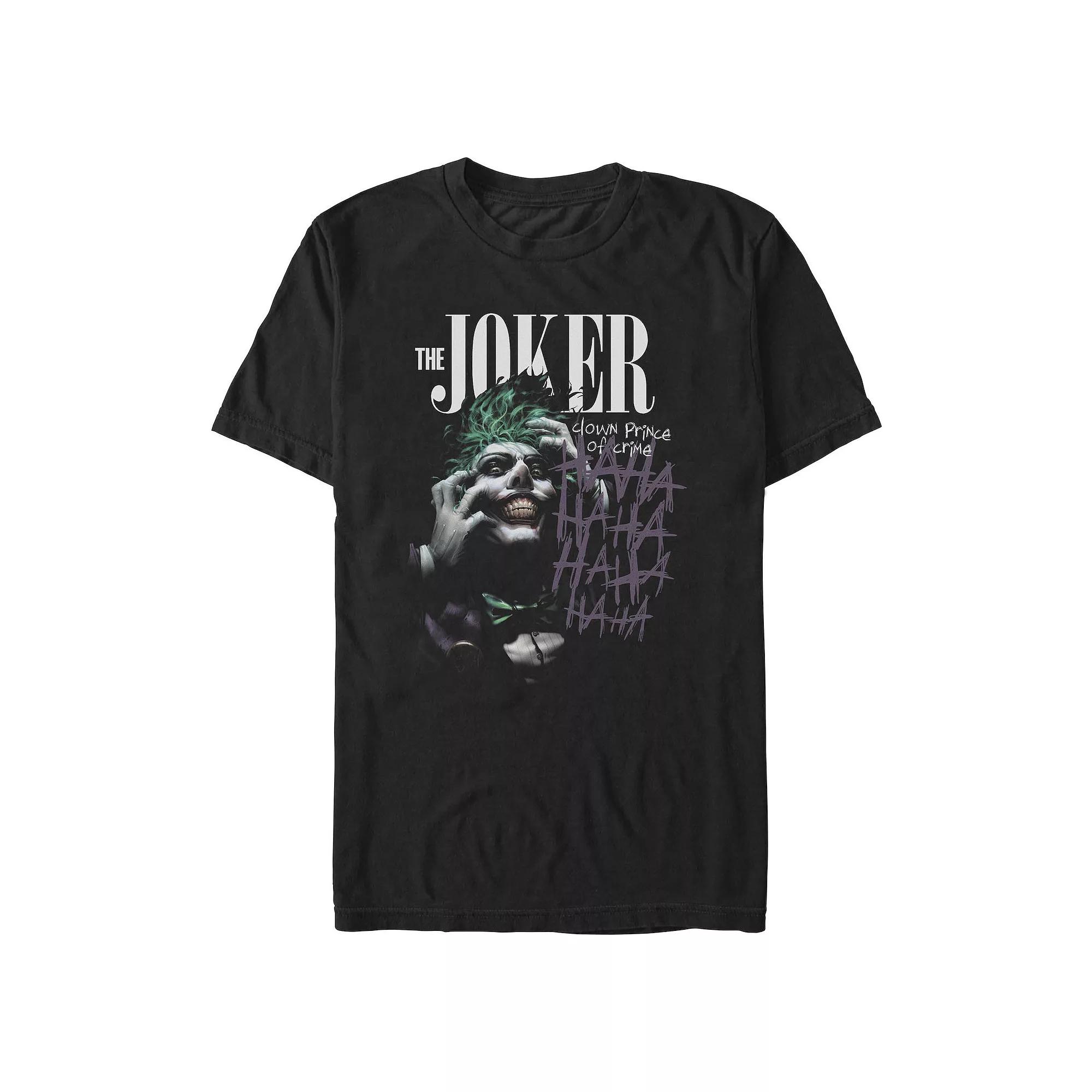 Unleash your inner mischief with this playful tee featuring the iconic character. Perfect for casual outings or a night in, the vibrant graphic will definitely spark some laughs and conversations while keeping your style effortlessly cool. Click on this MEN'S GUIDE to find the perfect fit and more! - https://www.kohls.com/feature/mens-apparel-guide.jsp. FEATURES: Short sleeve design, Bold graphic print of The Joker. MATERIAL & CARE: Cotton, Machine wash. DETAILS: Crewneck neckline, Short sleeves, Imported. Color: Black. Gender: male. Age Group: adult.