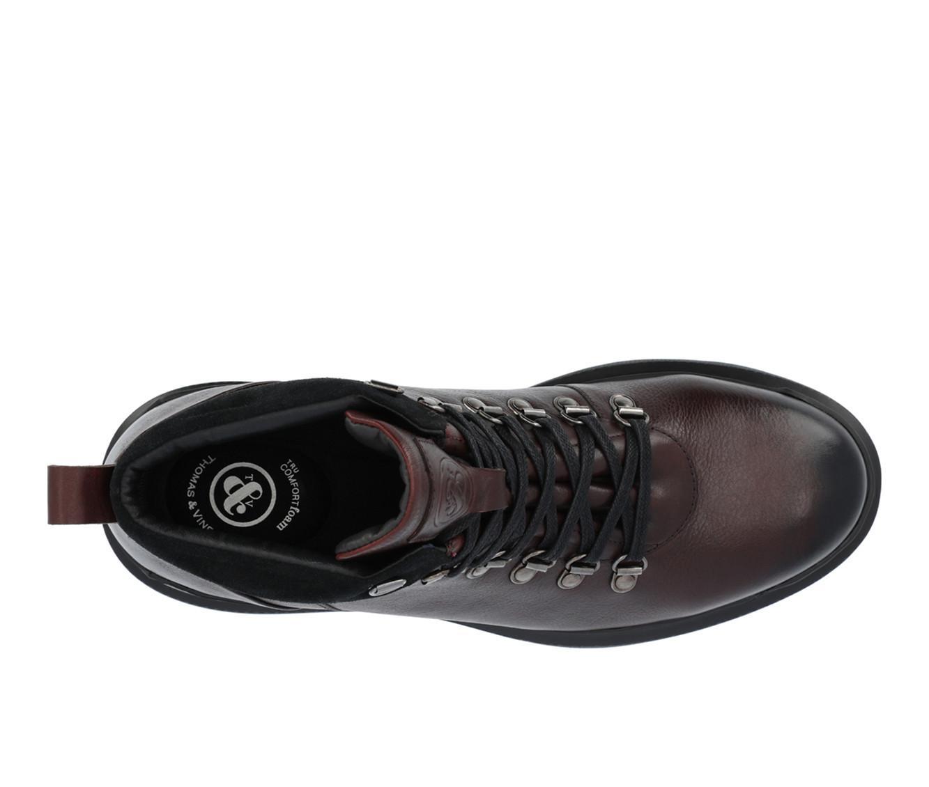 Introducing the Sherman ankle boot by Thomas & Vine. These boots are crafted from water-resistant genuine leather, perfect for keeping your feet dry in any weather. With a 12 mm Tru Comfort Foam™ insole and a padded collar and tongue, they provide exceptional comfort all day long. The lace-up design and 1 1/4-inch block heel add a rugged look.