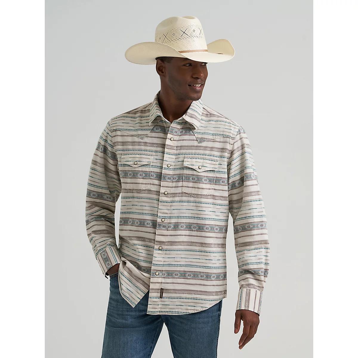 Men's Wrangler Retro® Premium Long Sleeve Western Snap Printed Shirt in Neutral Serape