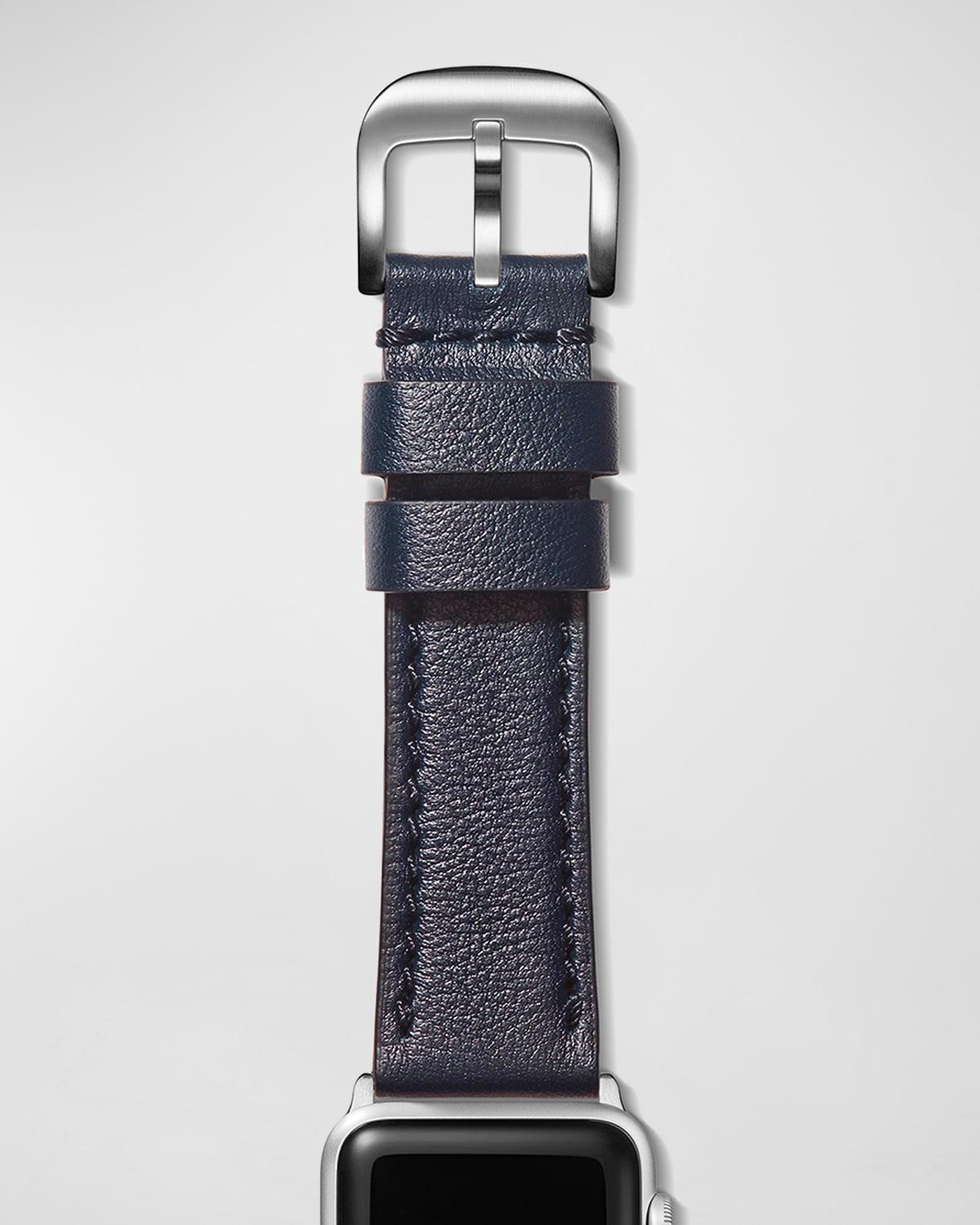 Compatible with the 38mm/40mm Apple Watch in both function and style. 20mm premium leather strap. 18mm classic stainless steel buckle. An adapter makes it easy to slide the strap into place. Built in the USA with Swiss and Imported Components