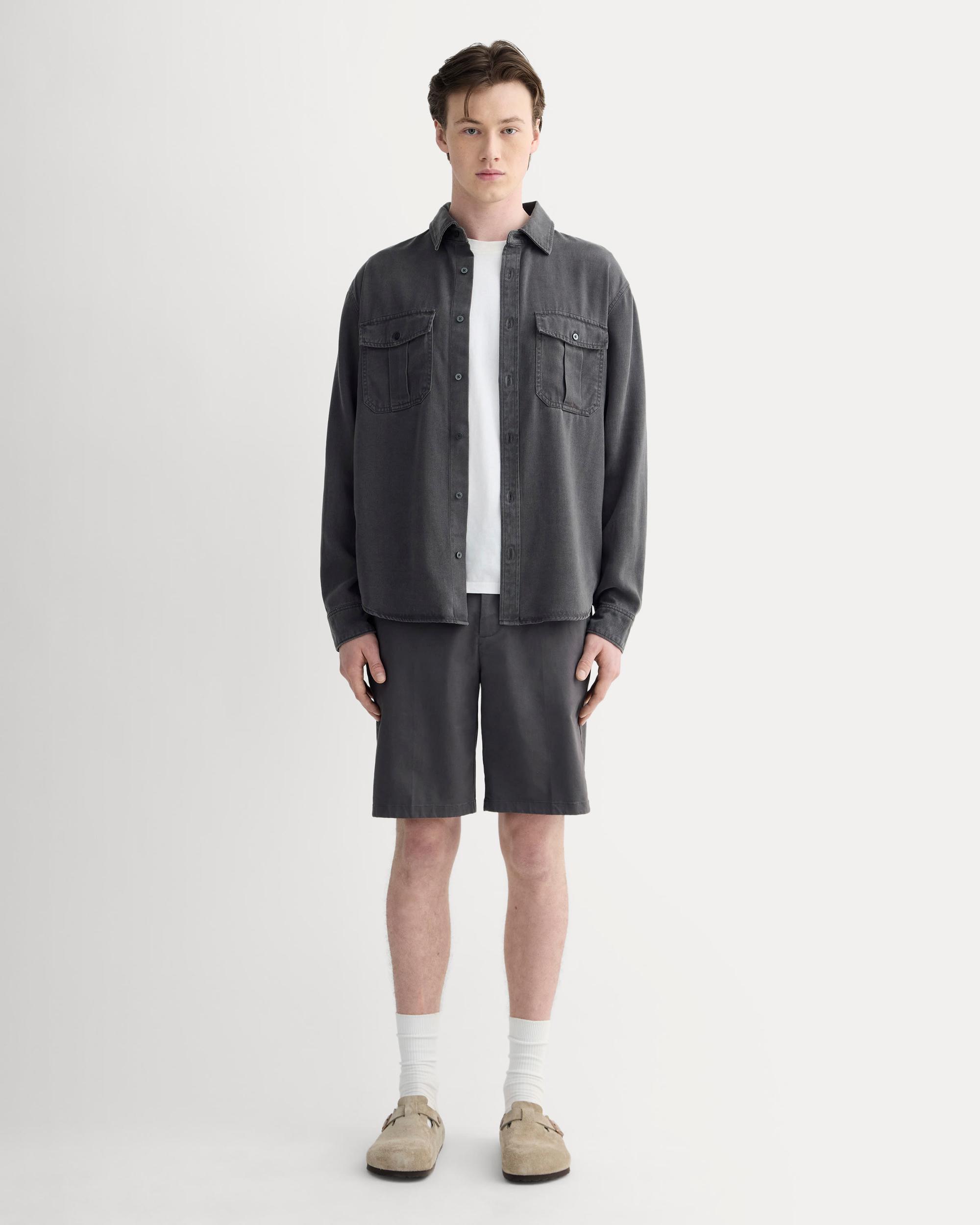 About This Style. Your everyday chinoshort edition. Made from the same breathable moisture-wicking fabric as our best-selling Transit Chino this longer 9 short is built for whatever the day throws your way. With comfort stretch an easy fit and a hidden zip pocket to keep things secure its polished enough to wear anywhere but relaxed enough to feel effortless. Because warm-weather dressing should be simple. Mens 9 Transit Short by Everlane in Graphite, Size 35