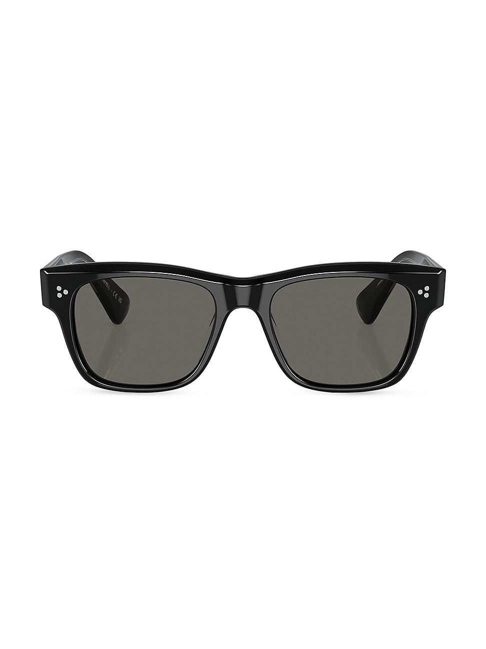 Oliver Peoples Birell sunglasses feature pillow-shaped rectangular frames, solid lenses, and a three-dot design at the temples. Solid lenses Acetate Made in Italy SIZE 52mm lens width 18mm bridge width 145mm temple length. Soft Accessories - Men Sunglasses > Oliver Peoples > Saks Fifth Avenue > Barneys. Oliver Peoples. Color: Black.