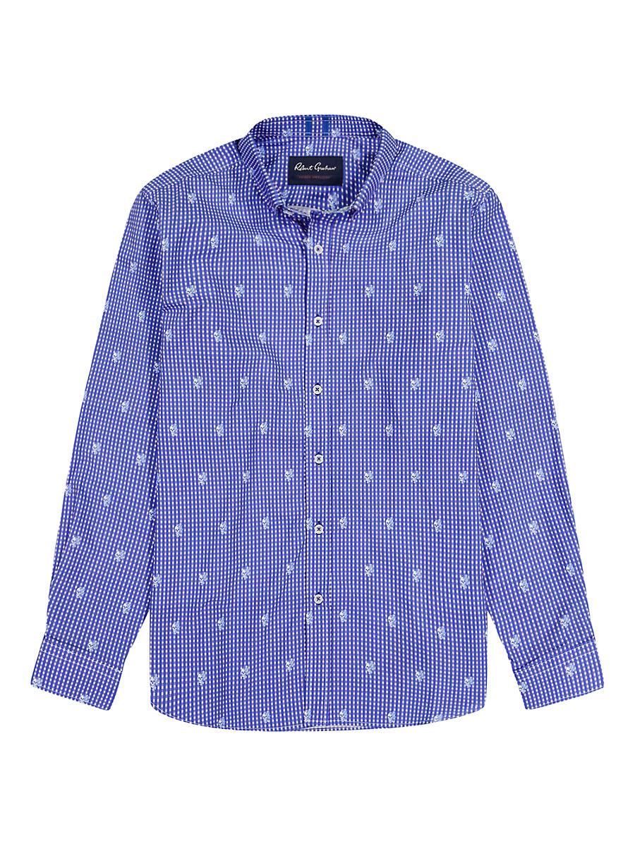 Crafted of cotton, the Bryson gingham shirt from Robert Graham features a button-down collar and long sleeves. Button-down pont collar Long sleeves, button cuffs Shirttail hem Button-front closure 100% cotton Machine wash Made in USA SIZE & FIT About 28 from shoulder to hem Model measurements: 62 tall, 40 chest, 31 waist Model is wearing a US size Medium. Mens Modern Coll & Outer - Contemp Classic Collecti > Robert Graham > Saks Fifth Avenue > Barneys. Robert Graham. Color: Blue. Size: XL.