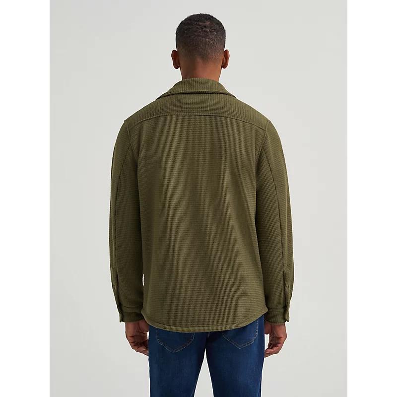 Cold weather cool gets an upgrade with this chunky waffle shirt. Bonded with the soft sherpa lined, its chunky waffle design doesn’t just look good, it’s an insulator that always delivers. It also features a snap front, fold down collar, and dual chest pockets with button closure. 95% Polyester, 5% Spandex; Lining: Polyester. Dark Olive. S.
