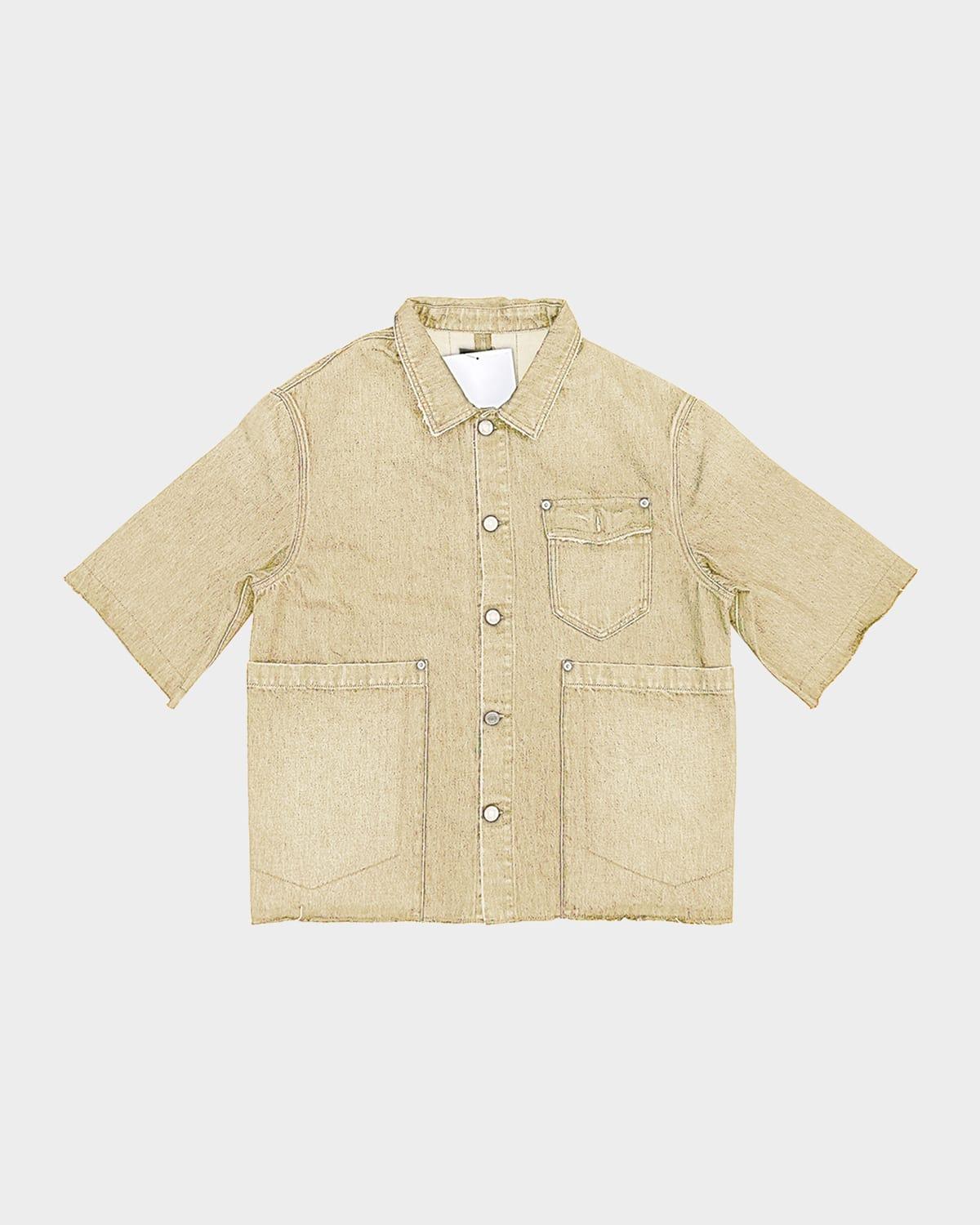 Mens Distressed Denim Snap-Front Shirt