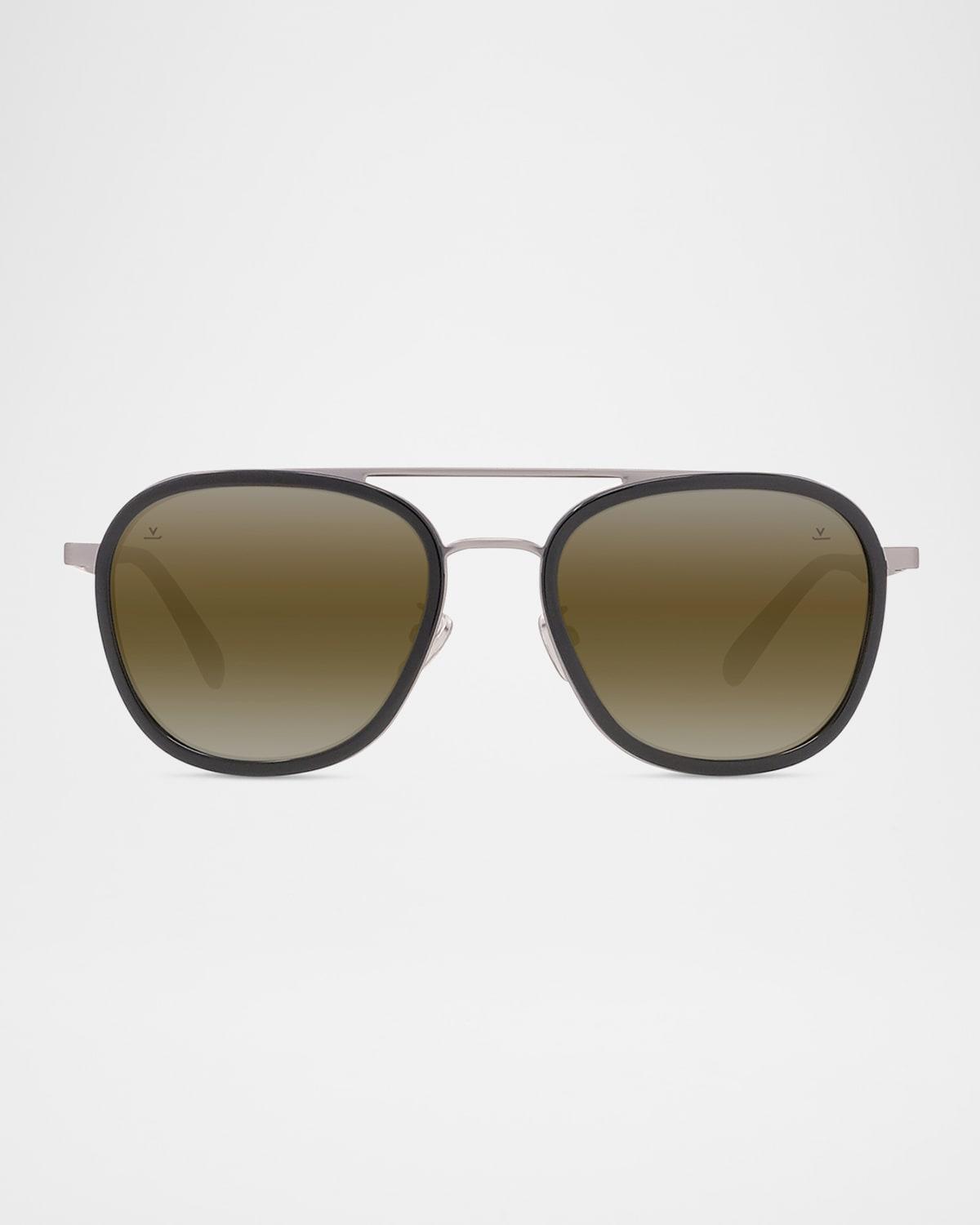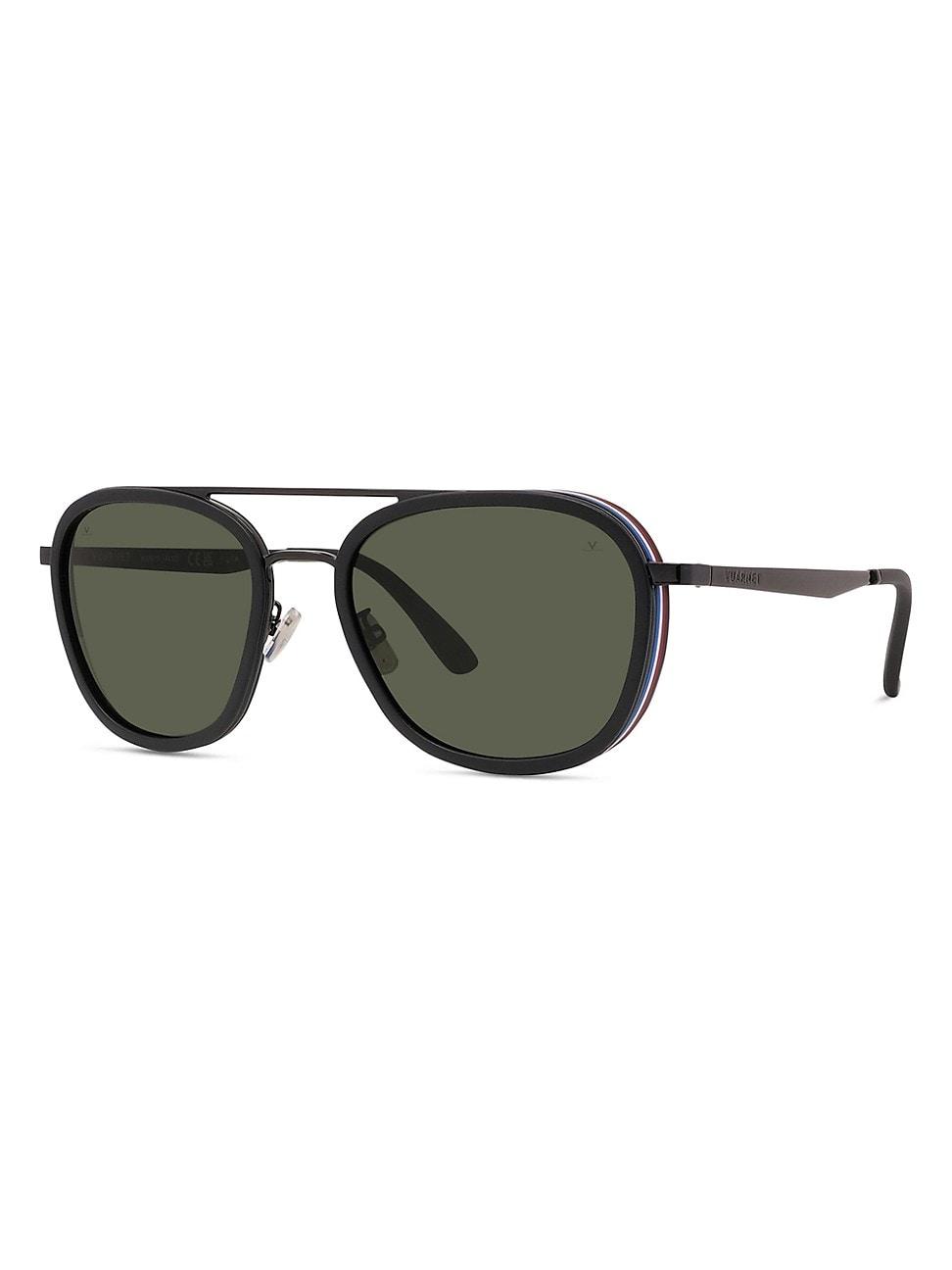 Vuarnet Edge 04 rectangle sunglasses in stainless steel Lens/bridge/temple (in mm): 019145 Solidcolor lenses with V on ski Double nose bridge Adjustable nose pads Engraved logo on the temples Thin arms Curved, capped temple tips Stainless steel Hand wash 100% UVA/UVB protection Made in Italy