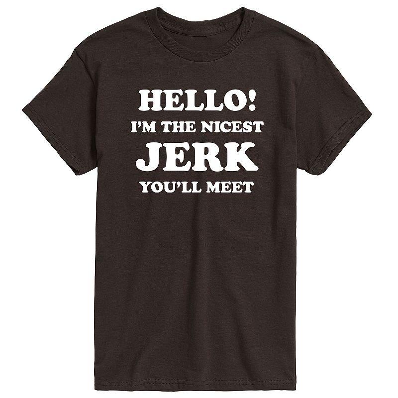 Youll love the fit & feel of this Mens Hello Nicest Jerk Youll Meet Graphic Tee. Youll love the fit & feel of this Mens Hello Nicest Jerk Youll Meet Graphic Tee. FEATURES Crewneck Short sleevesFABRIC & CARE Heather: Cotton, polyester; Solid: Cotton Machine wash Imported Size: XXL. Color: Dark Brown. Gender: male. Age Group: adult.