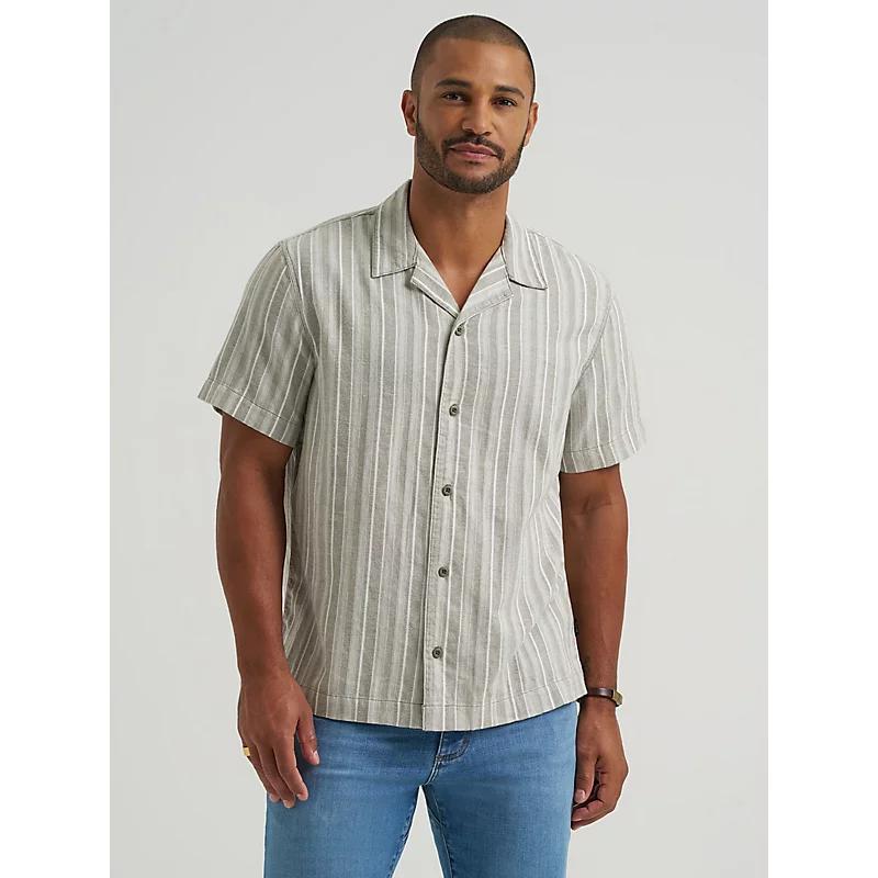 This breezy shirt was built to maximize your weekend downtime and laid-back adventures. It features a button-down front, a loose fit that lets you move freely, and a camp collar for a touch of retro resort styling. An easy choice when you’re in for a chill day. 100% Cotton. Natural Olive Stripe. XL.