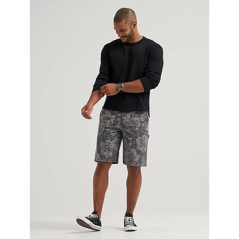 "Loose & comfortable, these carpenter shorts feature authentic workwear styling with a hammer loop and plier pocket. They are opened up at the waist so they sit lower on the hips and have a loose seat and thigh with an 11"" inseam." 98% Cotton, 2% Elastane. Static Gray. 36 W / 11 Inches.
