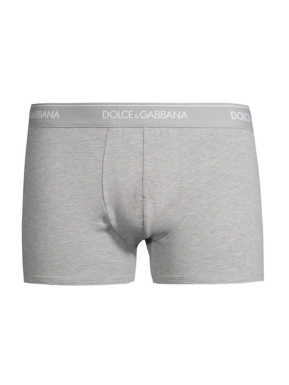 These Dolce & Gabbana boxers are crafted of stretch cotton and feature a contoured pouch at the front. A logo elasticized waistband completes this style. Pack of two Elasticized waistband Contoured pouch Pulls on 95% cotton/5% elastane Waistband: 80% polyester/10% elastane/10% polyamide Machine wash Imported ABOUT THE BRAND Mediterranean-inspired prints and luxe silhouettes are mainstays of the Italian label, launched in 1985 by Domenico Dolce and Stefano Gabbana. The eye-catching menswear line includes a lineup of sleek clothing, shoes and accessories. Men Accessories - Underwear > Dolce & gabbana > Saks Fifth Avenue > Barneys. Dolce & Gabbana. Color: Grey. Size: Large.