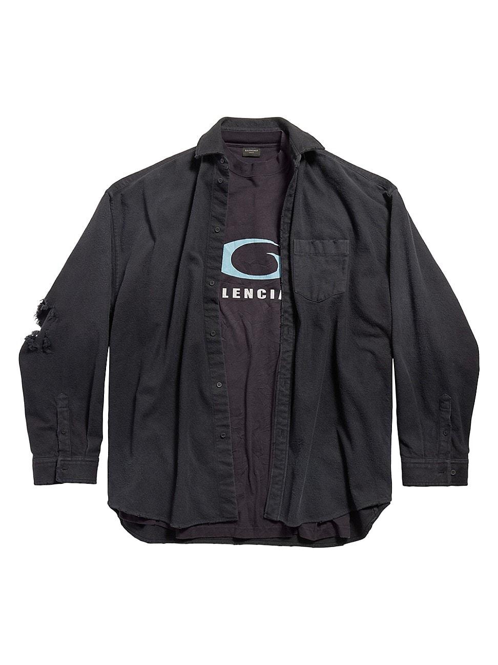 Japanese cotton flannel and vintage jersey This item is unisex T-shirt attached inside Shirt collar 7 button front 1 patch pocket at chest Long sleeves Main materials: 100% cotton, Trimming: 95% cotton, 5% elastane, Contains non-textile parts of animal origin Made in Italy. Lsd Rtw - Balenciaga Rtw > Balenciaga > Saks Fifth Avenue > Barneys. Balenciaga. Color: Black. Size: Small.