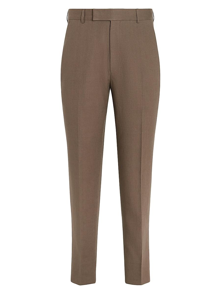 These Oasi Lino pants are made from Zegnas 100% traceable, European-grown linen. The inspiration behind this Oasi Lino garment was Born in Oasi Zegna, a 100km natural territory and the home of our values. Crafted from European-grown flax fibers that are certified as 100% traceable from 2024, Oasi Lino follows in the footsteps of our founder, who envisioned a vertically integrated system of producing textiles. Slim fit Tailoring pants 18.5 cm hem Zip and button closure Slanted pockets Flat front style 100% Linen Do not wash, do not bleach, do not tumble dry, professional dry cleaning in tetrachloroethene and hydrocarbons Made in Italy. Lsd Mens - Zegna Rtw > Zegna > Saks Fifth Avenue > Barneys. ZEGNA. Color: Dark Taupe. Size: 38.