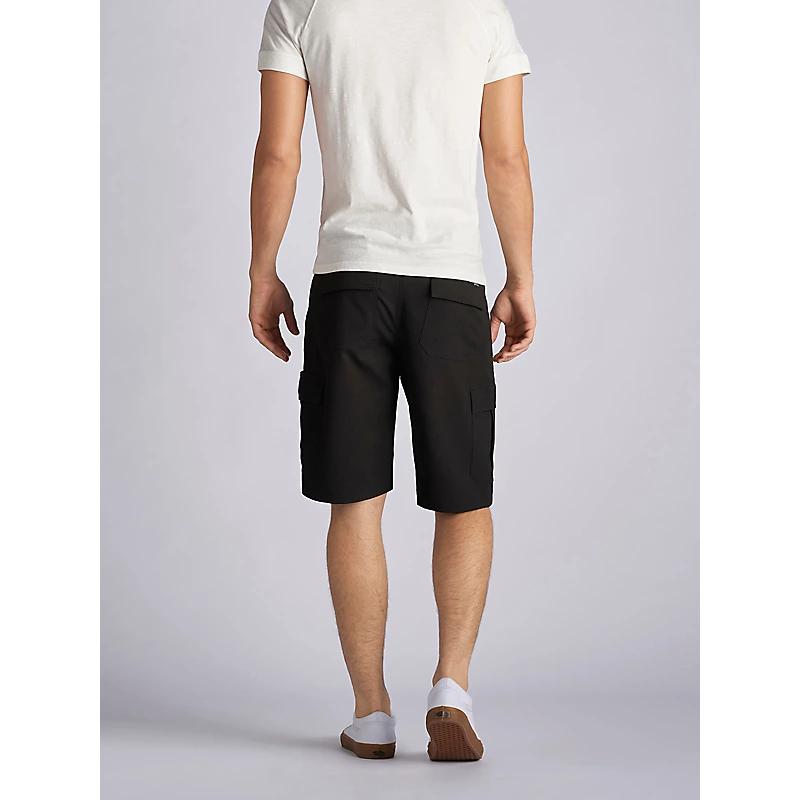 "The Dungarees Performance Cargo Short is now the Lee Performance Cargo Short. Same stylish design and signature comfort you've come to expect from Lee, just a new name. The Lee Performance Cargo Short with an 11"" inseam is designed to do just that perform. With the perfect combination of moisture wicking and no-iron technology, these shorts have you covered. We've even included a media pocket just behind the cargo pockets, so no more fumbling through pockets for your devices!" Dobby Mechnical Stretch: 100% Poly. Black. 58.