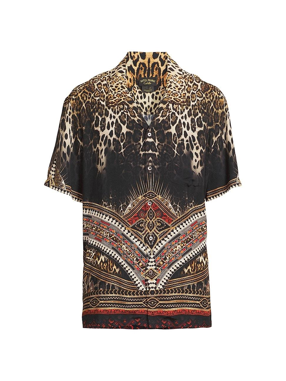 From the Pretty Fly For The Sinai Collection. The Pretty Fly For The Sinai Camp shirt from Camilla showcases intricate geometrics entwined with a rich leopard print background. A camp collar and short sleeves complete this style. Camp collar Short sleeves Front pocket Button-front closure 100% modal Hand wash Imported SIZE & FIT Model measurements: 62 tall, 40 chest, 31 waist Model is wearing a US size Medium. Mens Modern Coll & Outer - Swim Lifestyle > Camilla > Saks Fifth Avenue > Barneys. Camilla. Color: Pretty Fly For The Sinai. Size: Small.