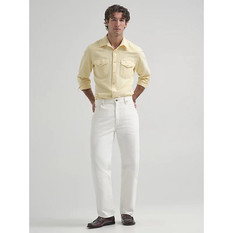 Introducing Lee® X J.Crew. We teamed up with the iconic J.Crew brand on this exclusive capsule that puts their East Coast spin on a few of our most historic pieces. We sourced this 13-ounce 100% cotton denim from Japan’s Kurabo mill (est. 1888), the supplier to Japan's first denim brand. It features custom hardware and a vintage-inspired Lee label as a nod to the brand's early-'70s aesthetic. With a slightly longer 12” front rise and a true straight leg, these jeans are a timeless wardrobe staple for everyone. 100% Cotton. Vintage White. 38 W / 32 L.