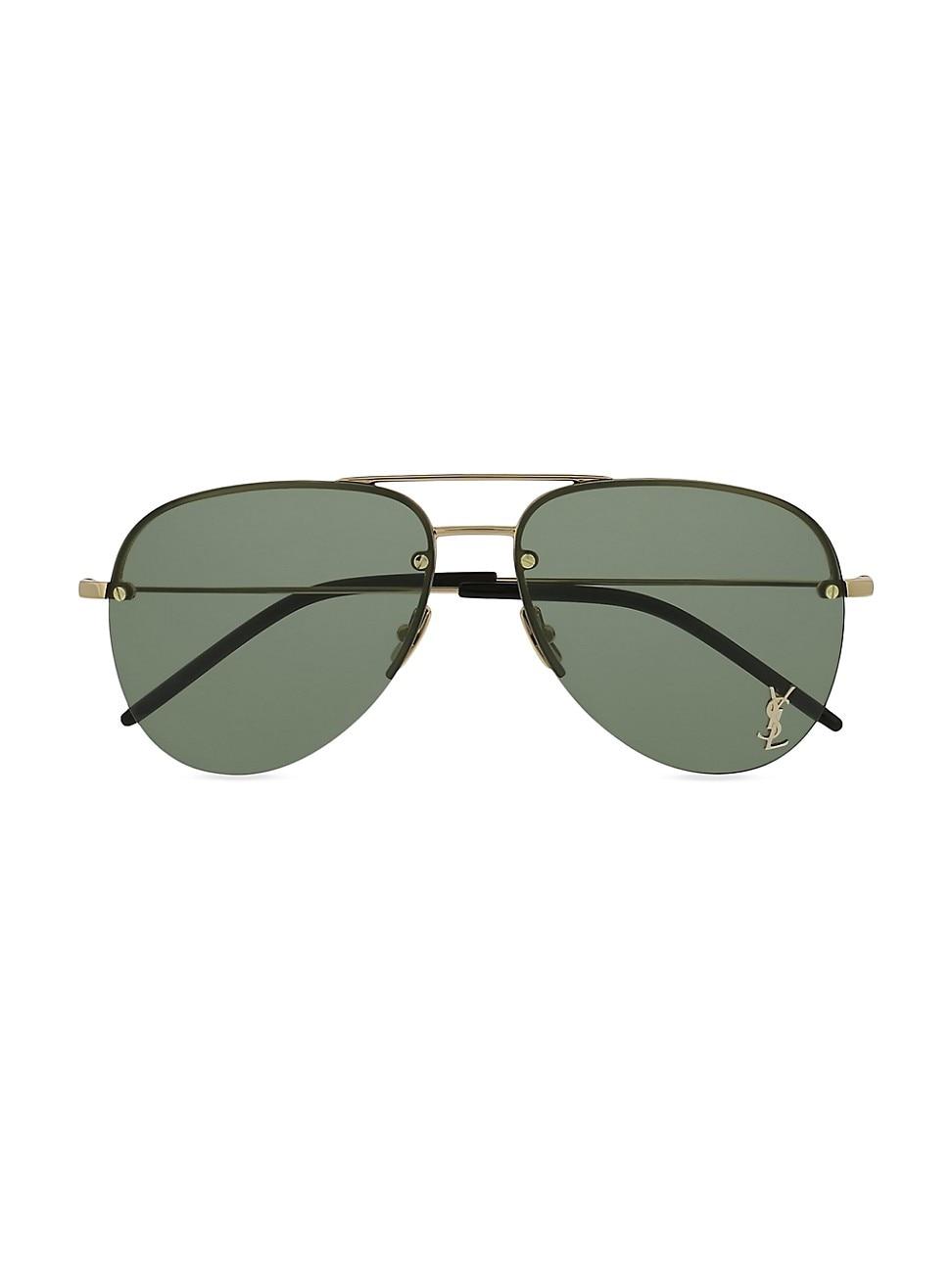 From the YSL Pin Collection. Saint Laurents Classic 11 metal pilot sunglasses feature adjustable nose pads, thin temples, and a signature monogram on the lenses. 100% UV protection Solid lenses Adjustable nose pads Metal Made in Italy SIZE 59mm lens width 13mm bridge width 140mm temple length ABOUT THE BRAND French fashion designer Yves Saint Laurent revolutionized 20th-century style when he launched his collection in 1961, merging sleek silhouettes with masterful tailoring. Today, Creative Director Anthony Vaccarello continues the houses legacy with bold accessories, sleek shoes and cool, everyday essentials. Soft Accessories - Men Sunglasses > Saint Laurent > Saks Fifth Avenue > Barneys. Saint Laurent. Color: Gold.