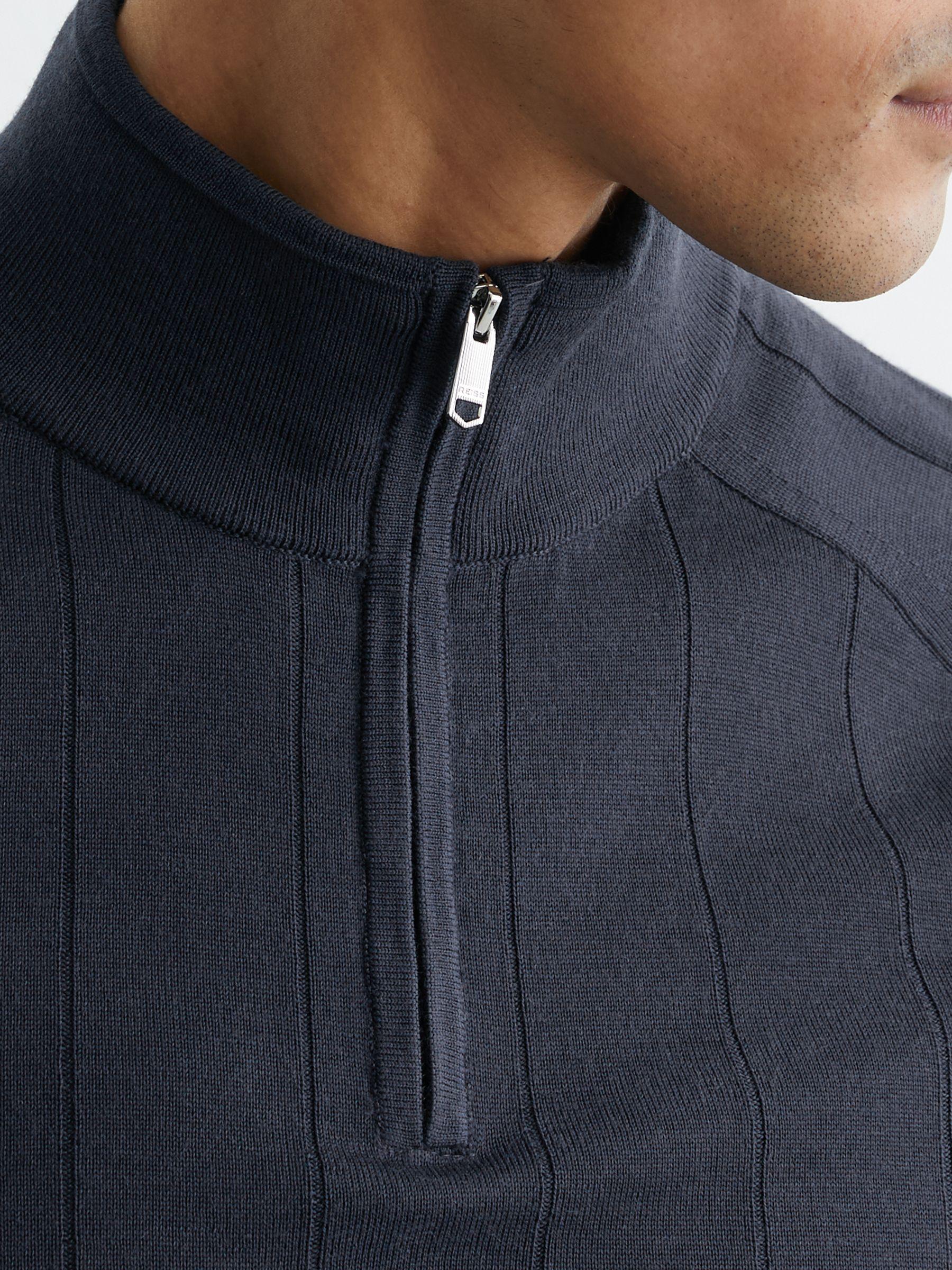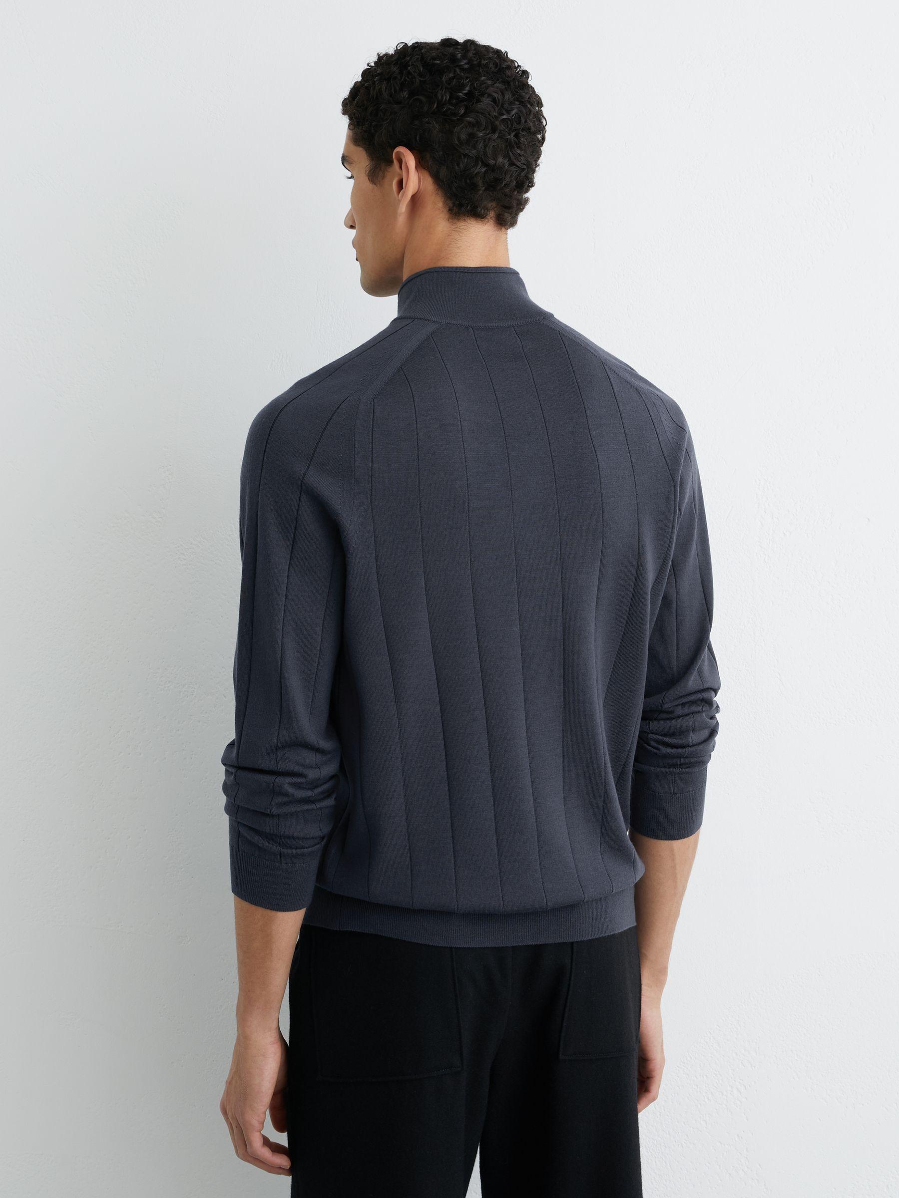 Merino Wool Wide-Rib Half-Zip Jumper in Airforce Blue