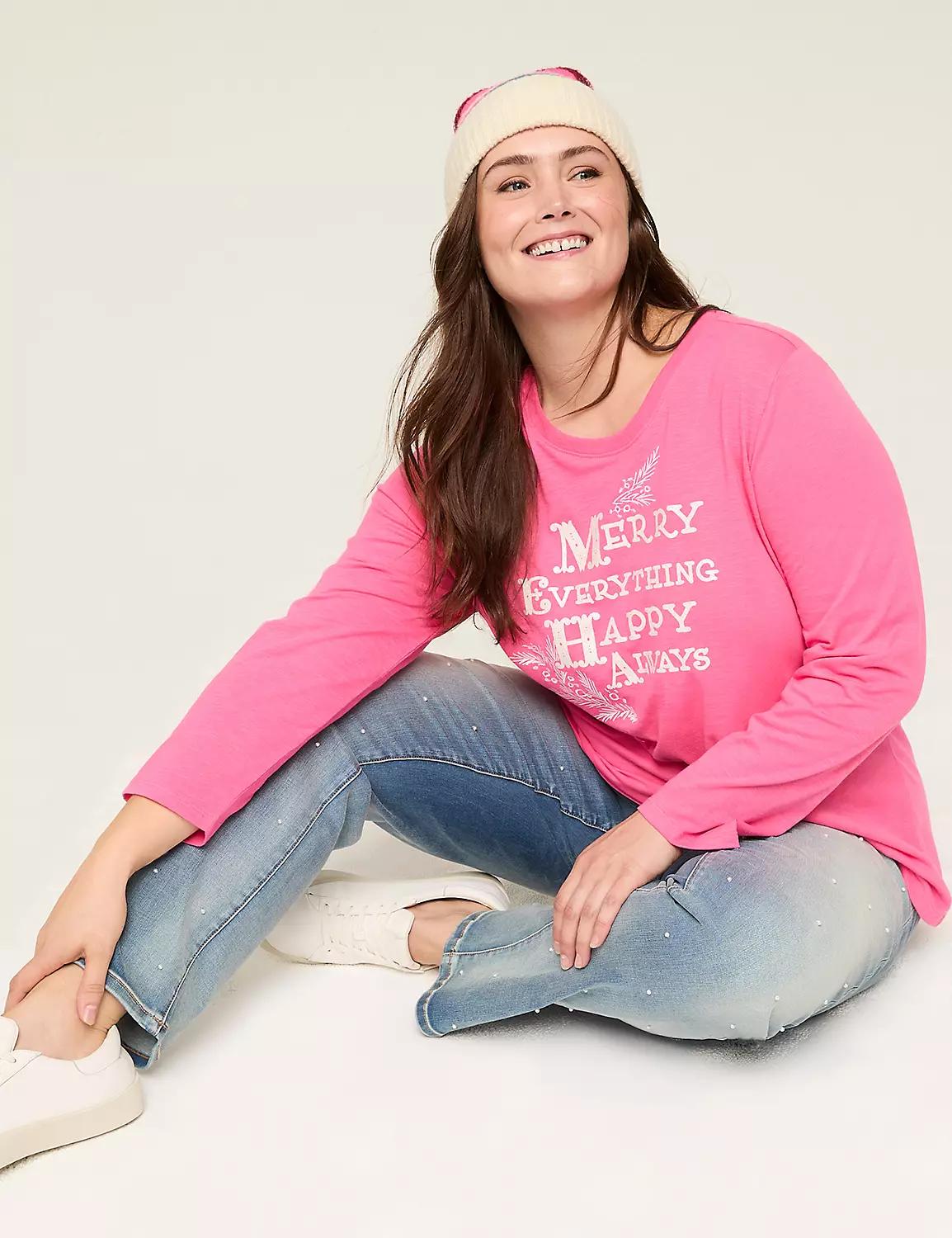 Shop for a Merry Everything Happy Always Long-Sleeve Graphic Tee at LaneBryant.com. Read reviews and browse our wide selection to match any budget or occasion.