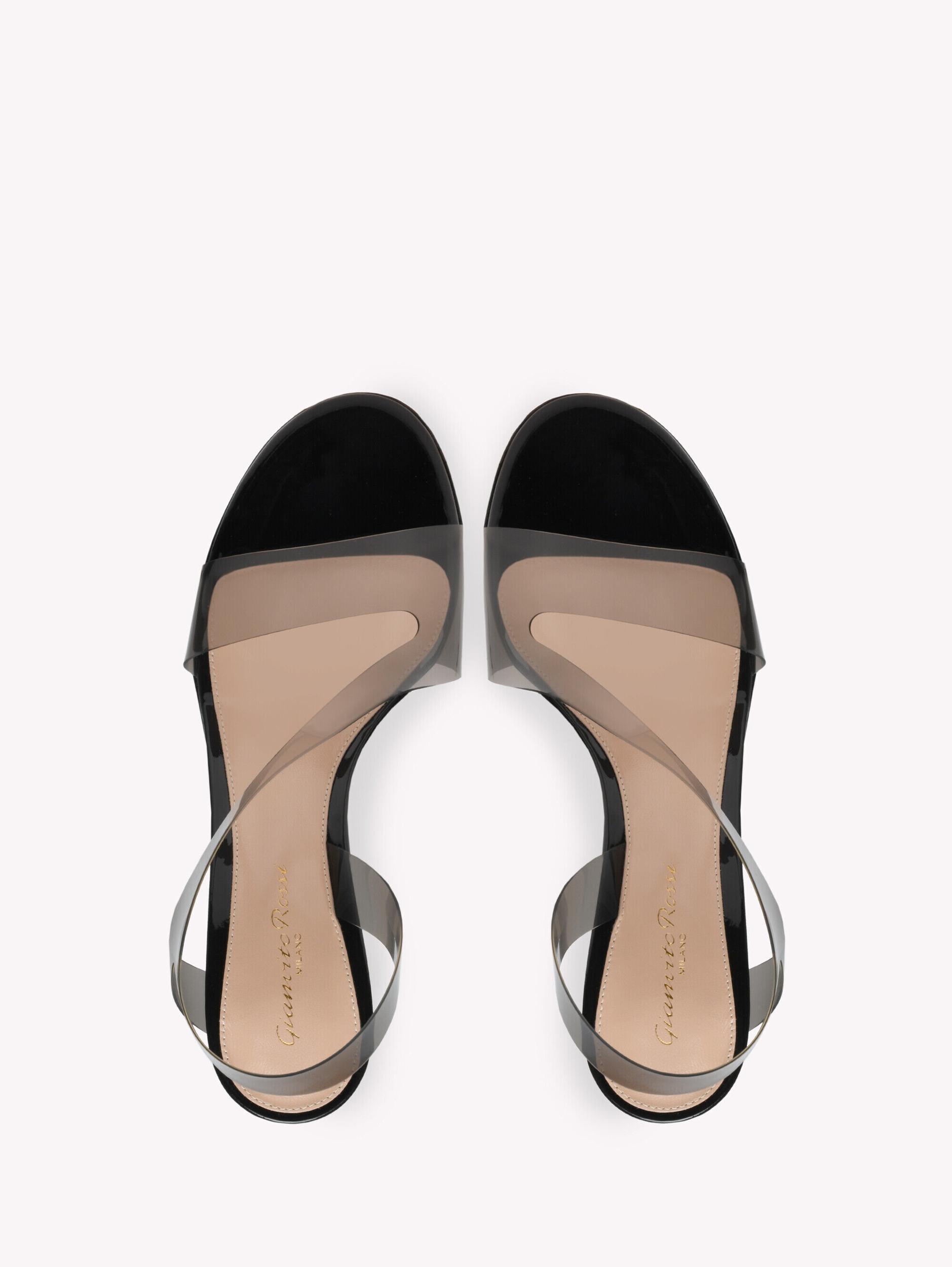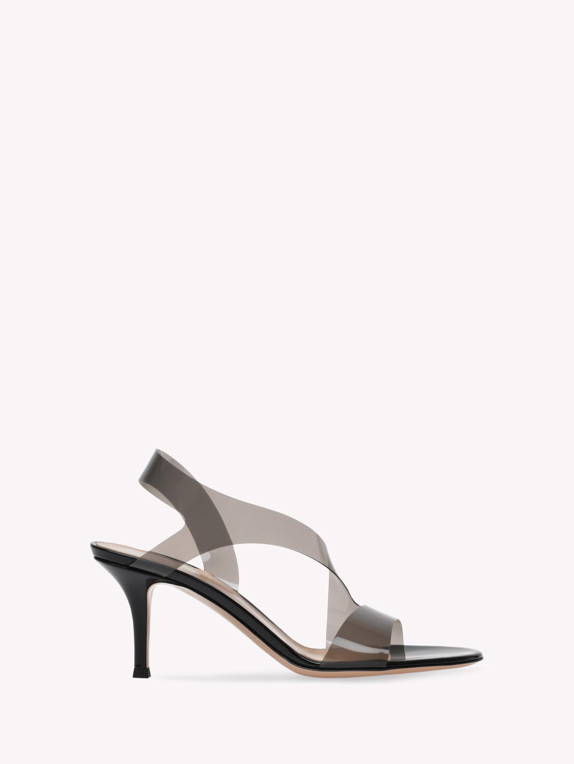 Metropolis 70 is a signature style, a barely-there sandal defined by a front all-in-one strap in soft Plexi and finely set on a 70mm stiletto heel. Handmade in Italy.