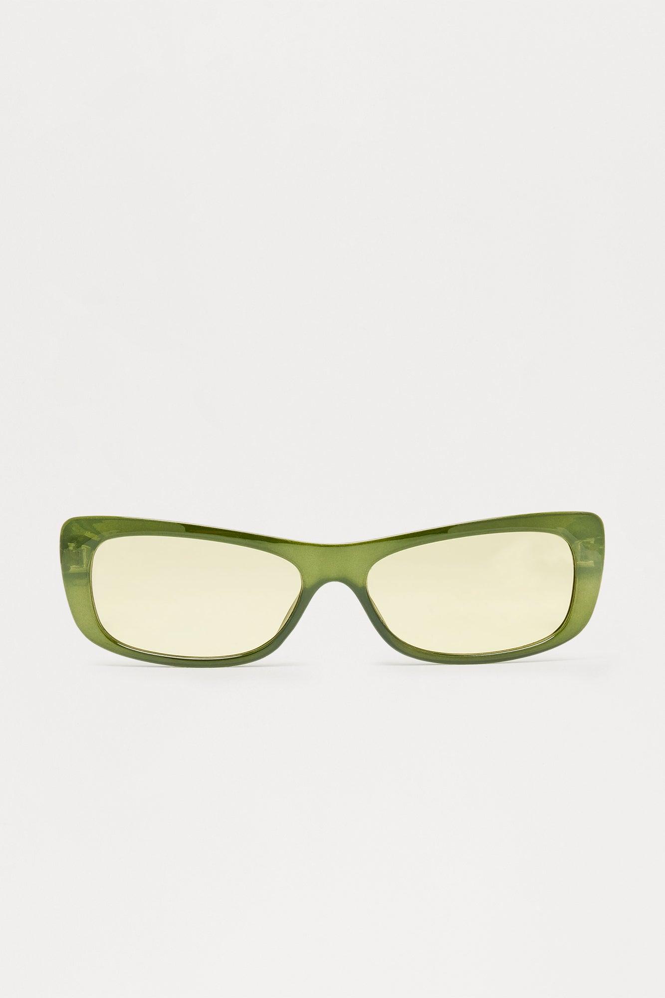Available In Green. Square Sunglasses Plastic Frame Color Lens Imported California Proposition 65WARNING: Cancer and Reproductive Harm - www.P65Warnings.ca.gov.