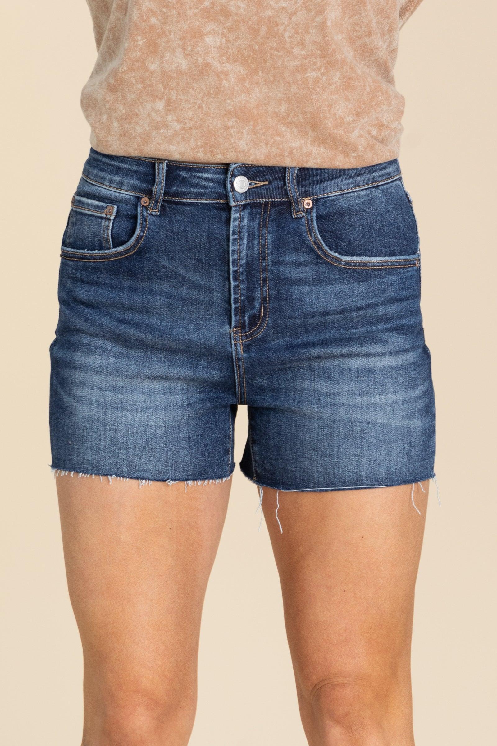 Product Details Color/Wash: Dark Wash Rise: High Rise Style: Frayed Hem Brand: Mica Denim Material and Care 82% Cotton 16% Polyester 2% Spandex Machine Wash Cold Tumble Dry Low Size and Fit X Small: Waist 26" Rise 10.5" Inseam 3.5" Small: Waist 28" Rise 11" Inseam 3.5" Medium: Waist 30" Rise 11.5" Inseam 3.5" Large: Waist 32" Rise 12" Inseam 3.5" XLarge: Waist 34" Rise 12.5" Inseam 4.5" 1X Large: Waist 36" Rise 13" Inseam 5" 2X Large: Waist 38" Rise 13.5" Inseam 5" 3X Large: Waist 40" Rise 14.5" Inseam 5" Model is 5’8” and wearing her true size small