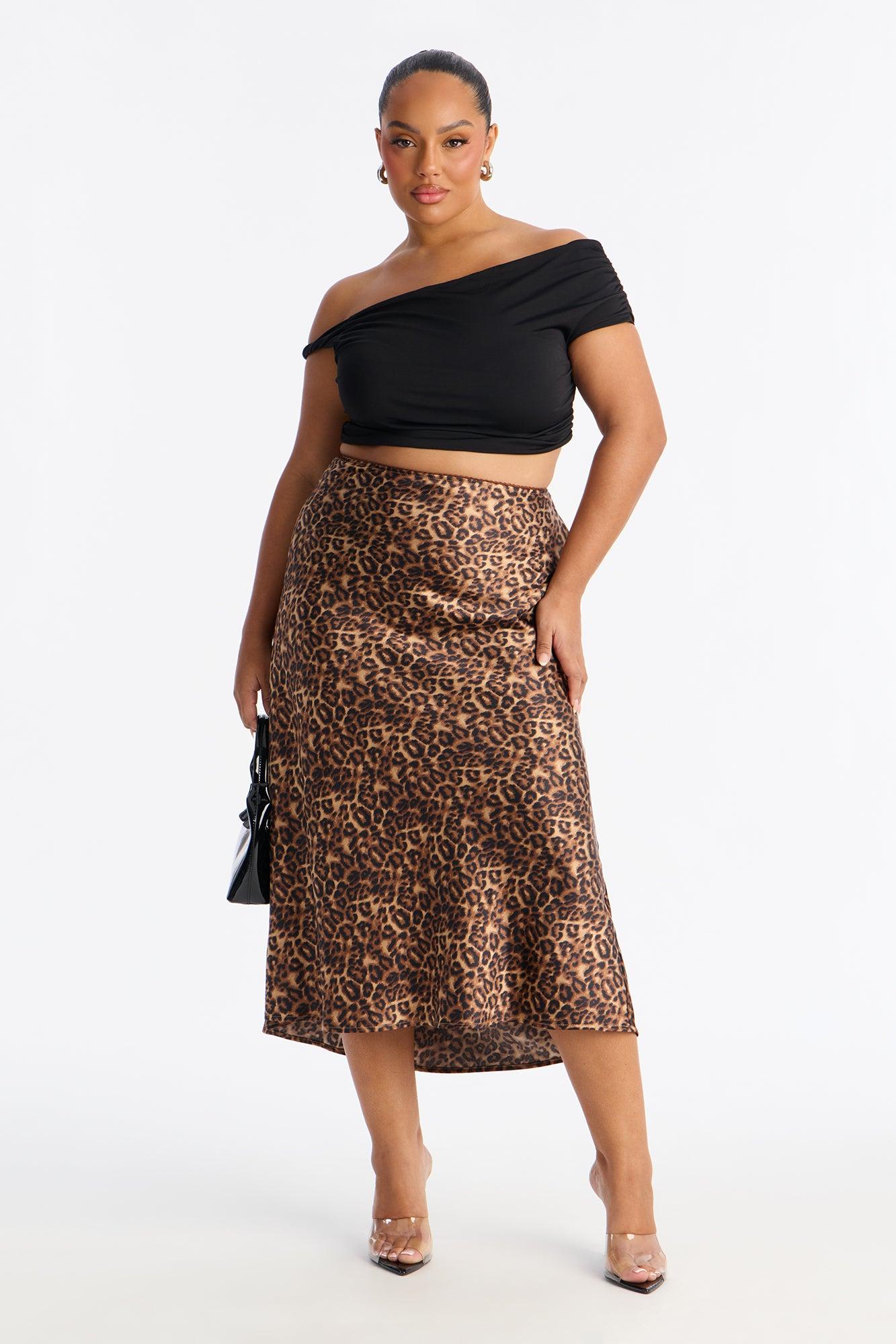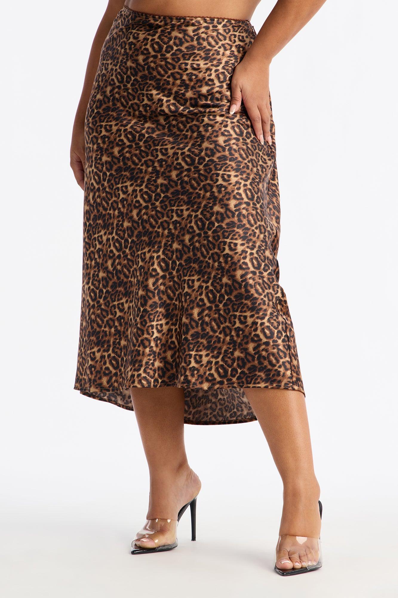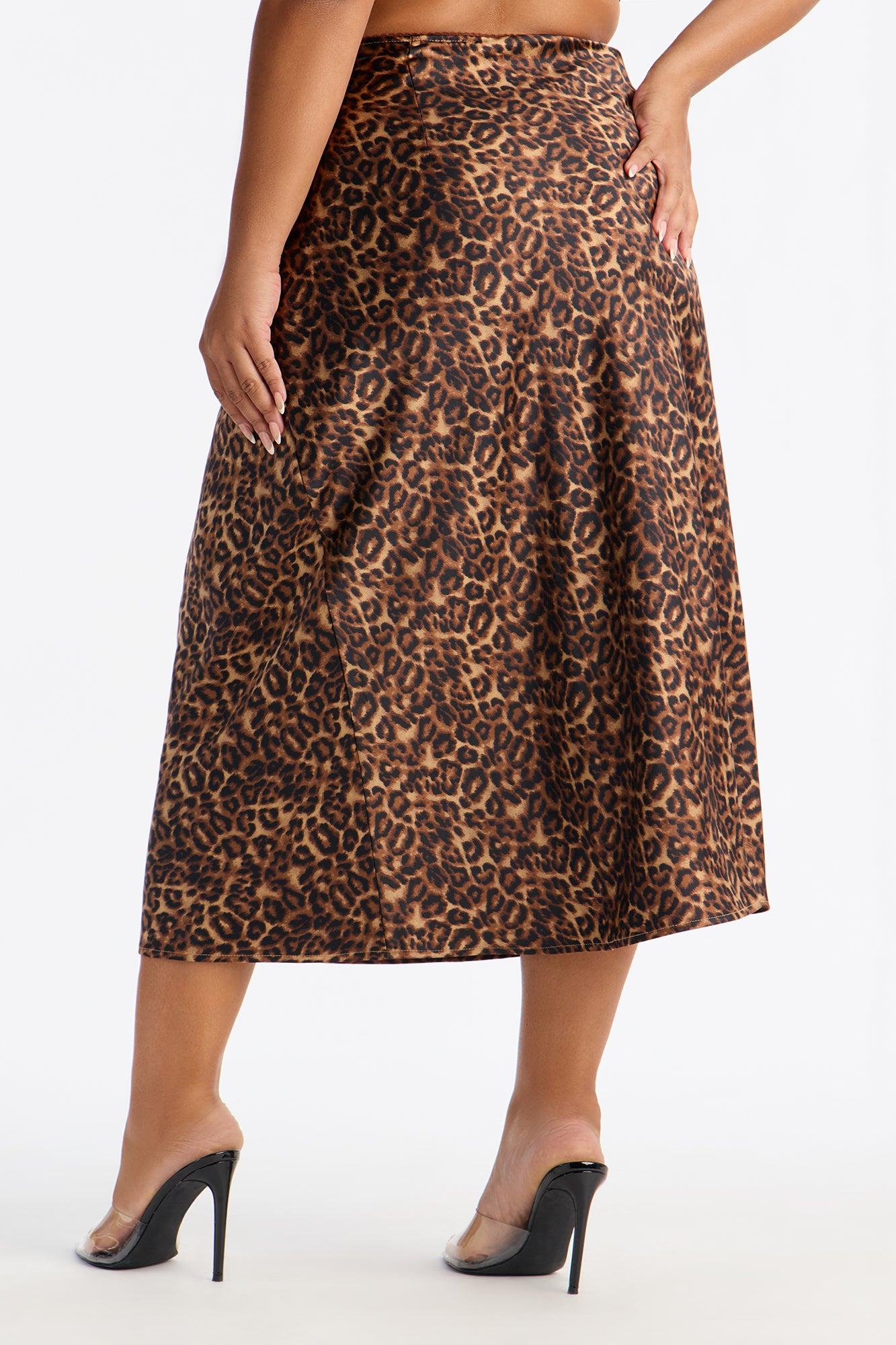 Micah Satin Leopard Print Midi Skirt - Leopard