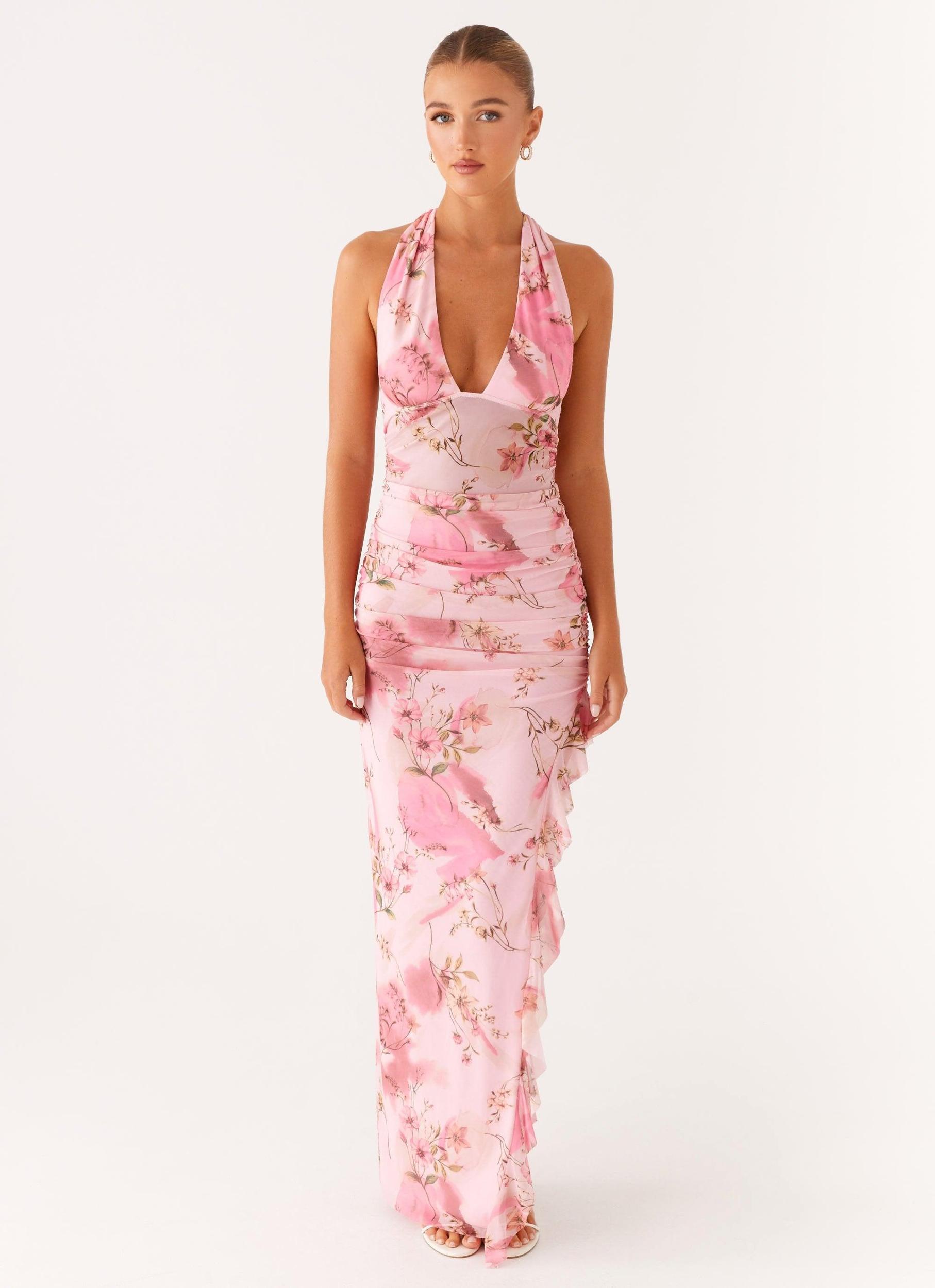 Peppermayo Exclusive The Micca Halter Maxi Dress is all about seductive allure. With a daring low front neckline and ruched sides, it’s designed to embrace your shape and elevate your presence. Perfect for those late-night moments when the spotlight’s on you, it flows seamlessly from golden hour to after-dark drama. - Maxi length- Low front neckline- Ruched sides- Exclusive print (print placement will differ per garment)- Stretch mesh material- Fully lined bustier and skirt- Semi-sheer bodice- Thick neck tie strap- Open back- 95% polyester, 5% spandex Size AU 8 / US 4 garment measurements: Length - 146cm / 57.5in.Bust - 70cm / 27.6in.Waist - 60cm / 23.6in.Hem - 64cm / 25.2in.Hip - 78cm / 30.7in. Yasmin is 174cm and wearing a size AU 6 / and US 2