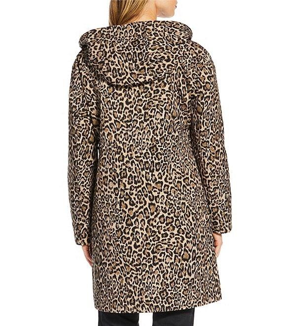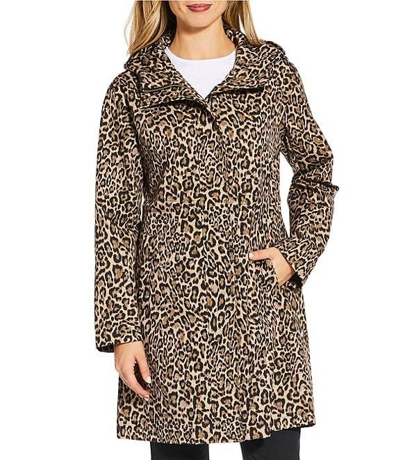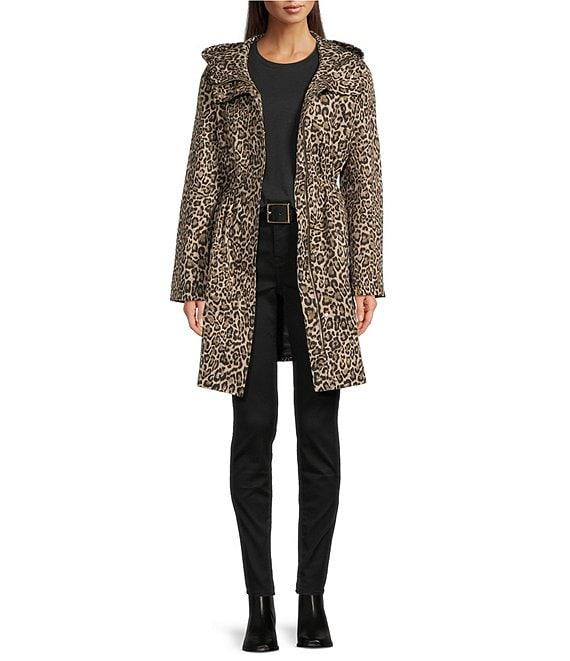 From MICHAEL Michael Kors, this jacket features: Woven fabrication Anorak silhouette Leopard print Stand collar neckline Long sleeves Front welt pockets Elastic D-cord waist Water-resistant Fitted fit Fully lined Straight hemline Invisible snap/zip closure Approx. 36" length Polyester; lining: polyester Machine wash Imported.