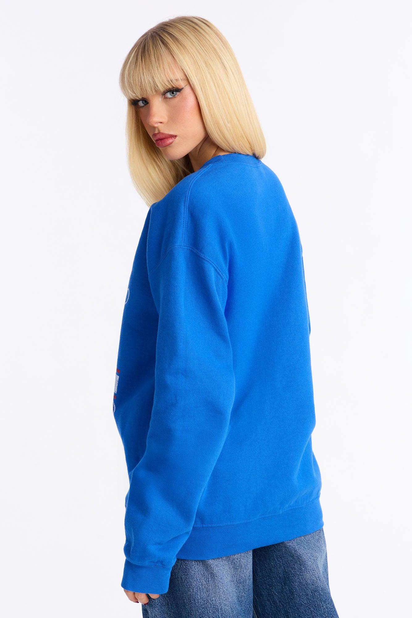 Available In Blue. Sweatshirt Fleece Long Sleeve Crew Neck Final Sale Disclaimer: Due To The Printing Process A Difference In Saturation May Occur. Each Garment Is Unique. 50% Cotton 50% Polyester Imported