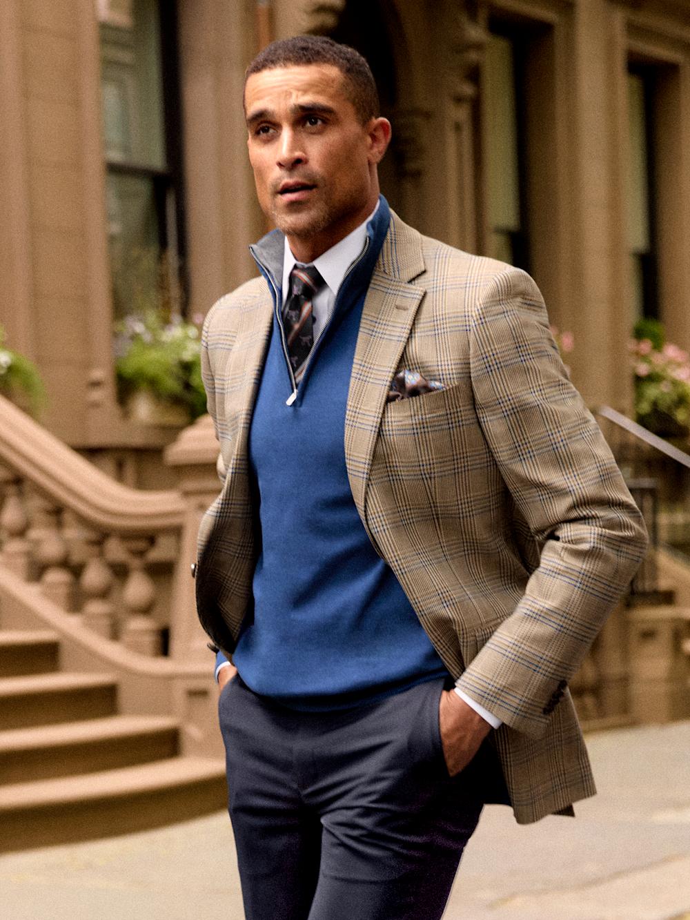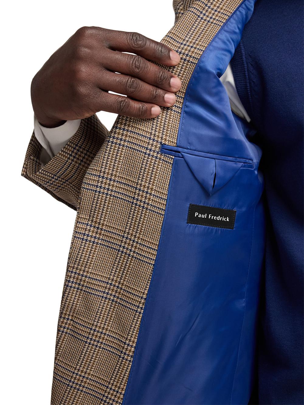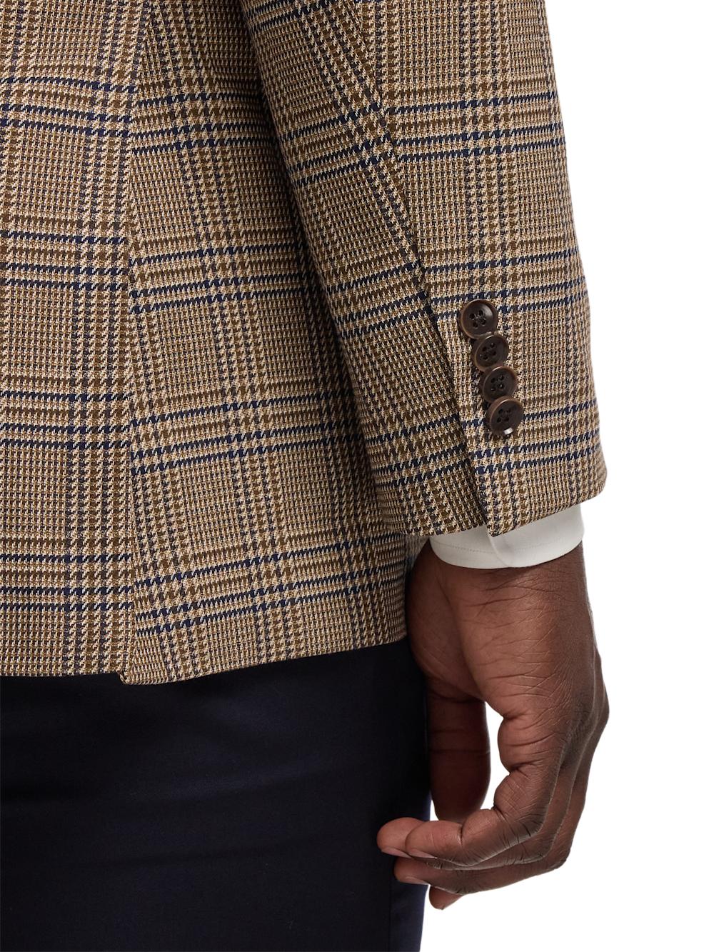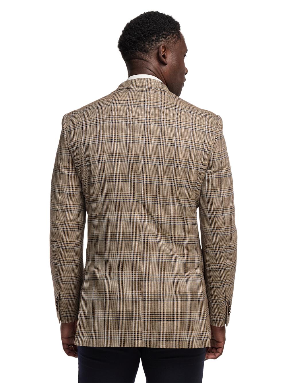 Microfiber Plaid Single Breasted Notch Lapel Sport Coat - Brown/navy
