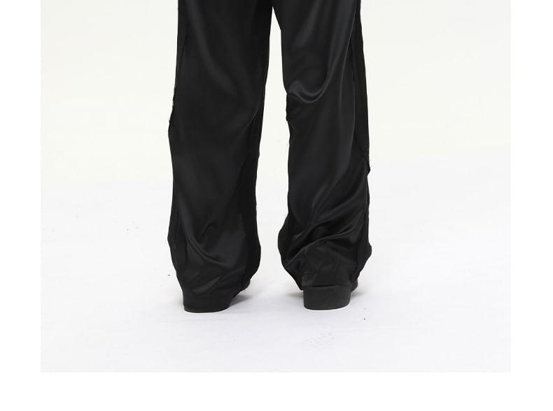 Mid Rise Plain Panel Satin Straight Leg Pants