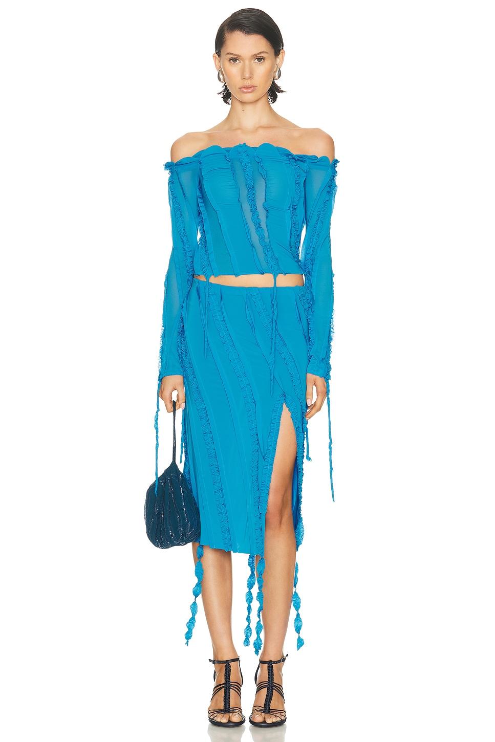 skirtsSelf: 94% viscose, 6% elastane / Made in Italy / Machine or hand wash / Unlined / Pull on stylingElastic waistband / Slinky jersey knit textile / Ruffle trimming throughout / Side slit / Item not sold as set / Our Style No. BMAF-WQ48 / Manufacturer Style No. A522G254A / Model is wearing size 36.