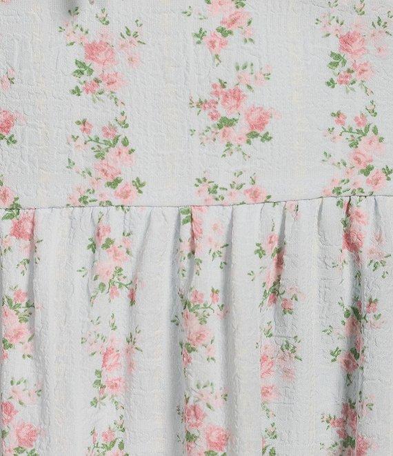 From Midnight Doll, this dress features: Textured woven fabric Floral print V-neck Short sleeves Smocked back Pullover construction 34" length from center-back neck Polyester/spandex; lined Machine wash/lay flat to dry Imported.