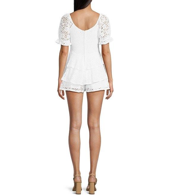 Midnight Doll Sweetheart Neck Short Puff Sleeve Tiered Lace Romper