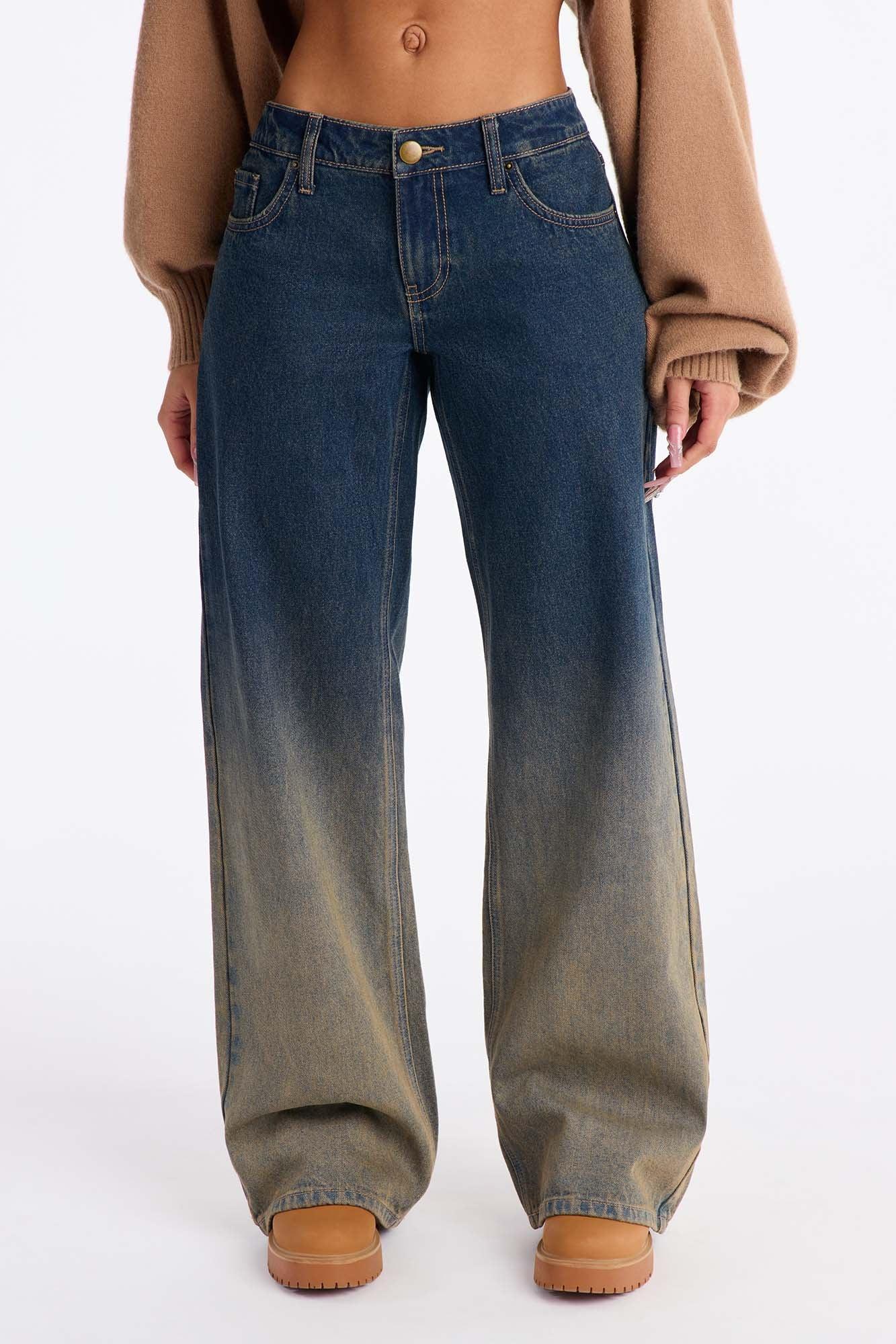 Midnight Hour Ombre Wide Leg Jeans - Dark Wash Female