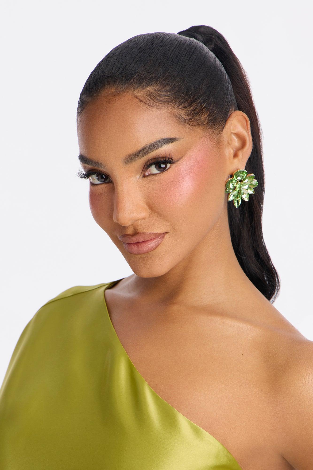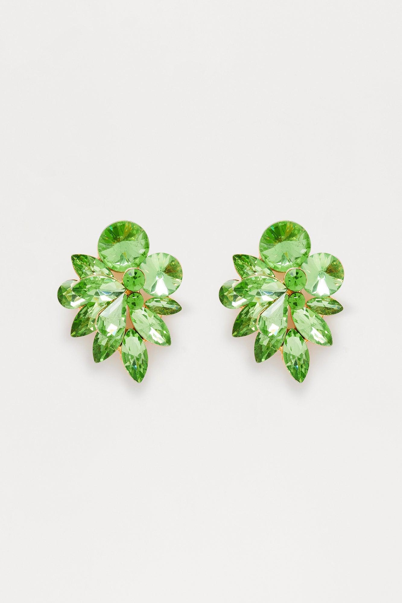 Midnight Kiss Rhinestone Earrings - Gold/Green Female