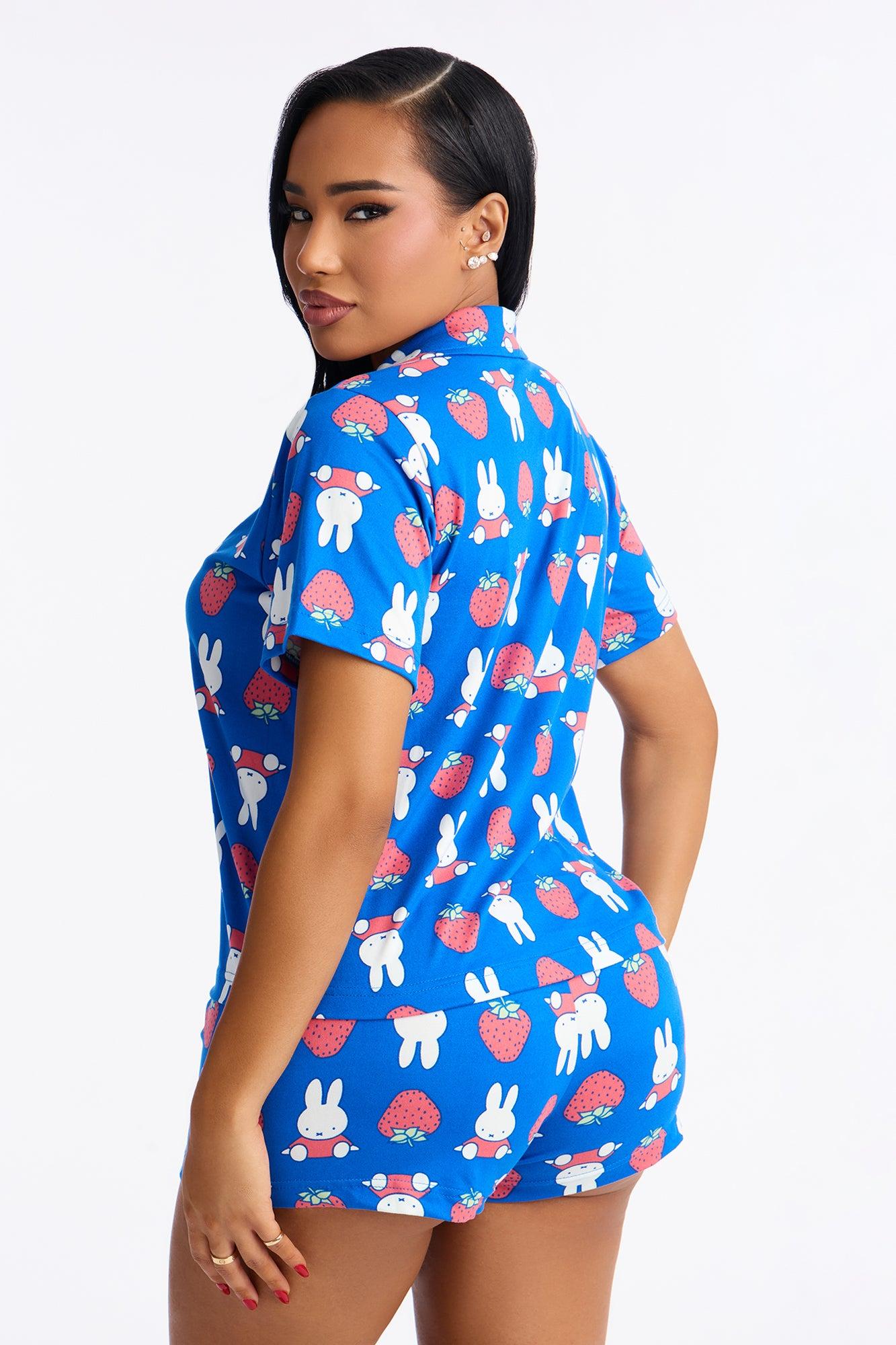 Available In Navy/combo. Collar Button Up Shirt PJ Short Set Matching Shorts Miffy Print Stretch Final Sale Disclaimer: Print Placement Will Vary. Self: 92% Polyester 8% Spandex Imported California Proposition 65WARNING: Cancer and Reproductive Harm - www.P65Warnings.ca.gov.