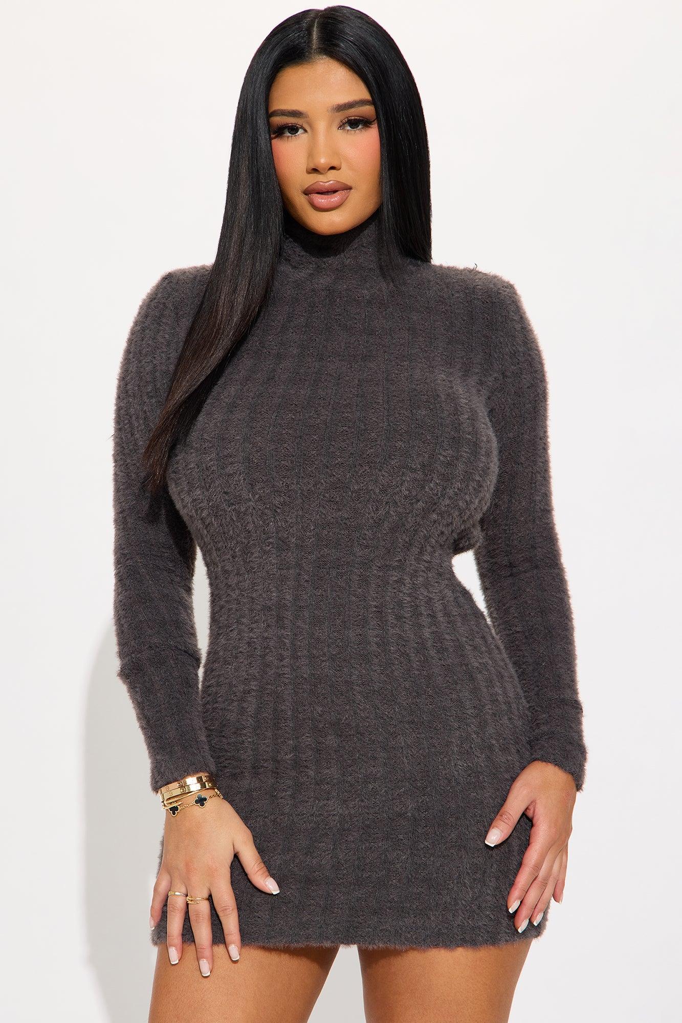 Mila Backless Sweater Mini Dress - Charcoal Female