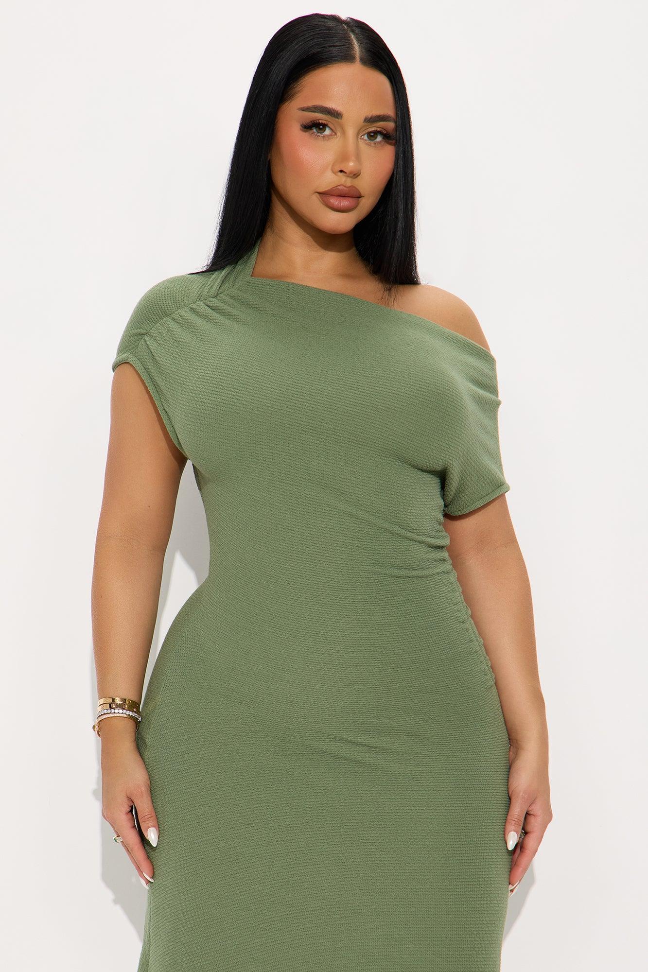 Milena Asymmetrical Textured Midi Dress - Olive Female