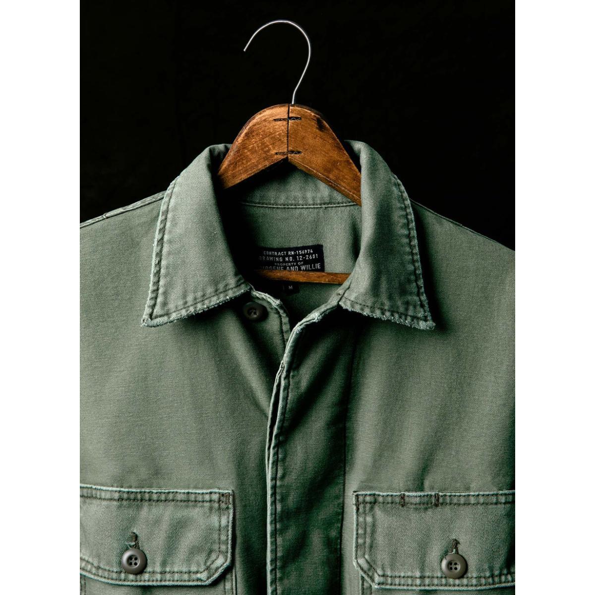 There was a time when it was the standard: clothes were made to last, with a form that followed their function. Their vintage-inspired military shirt jacket features oversized field pockets, a hidden-button placket with a j-stitch finish, and a straight hem. Patterned, cut, and sewn in the USA from American-made, 10oz military-issue sateen fabric.