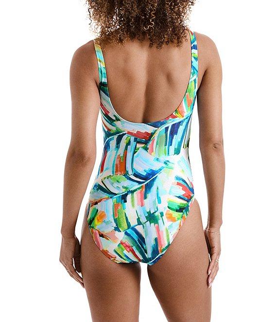 Mimi Flamingo Paradise Palm Printed Bailey Shirred Surplice One Piece Swimsuit
