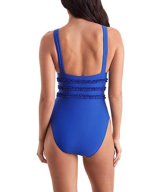 Mimi Flamingo Soleil Solids Sonny V-Neck Wide Strap Ruffle Trim One-Piece Swimsuit