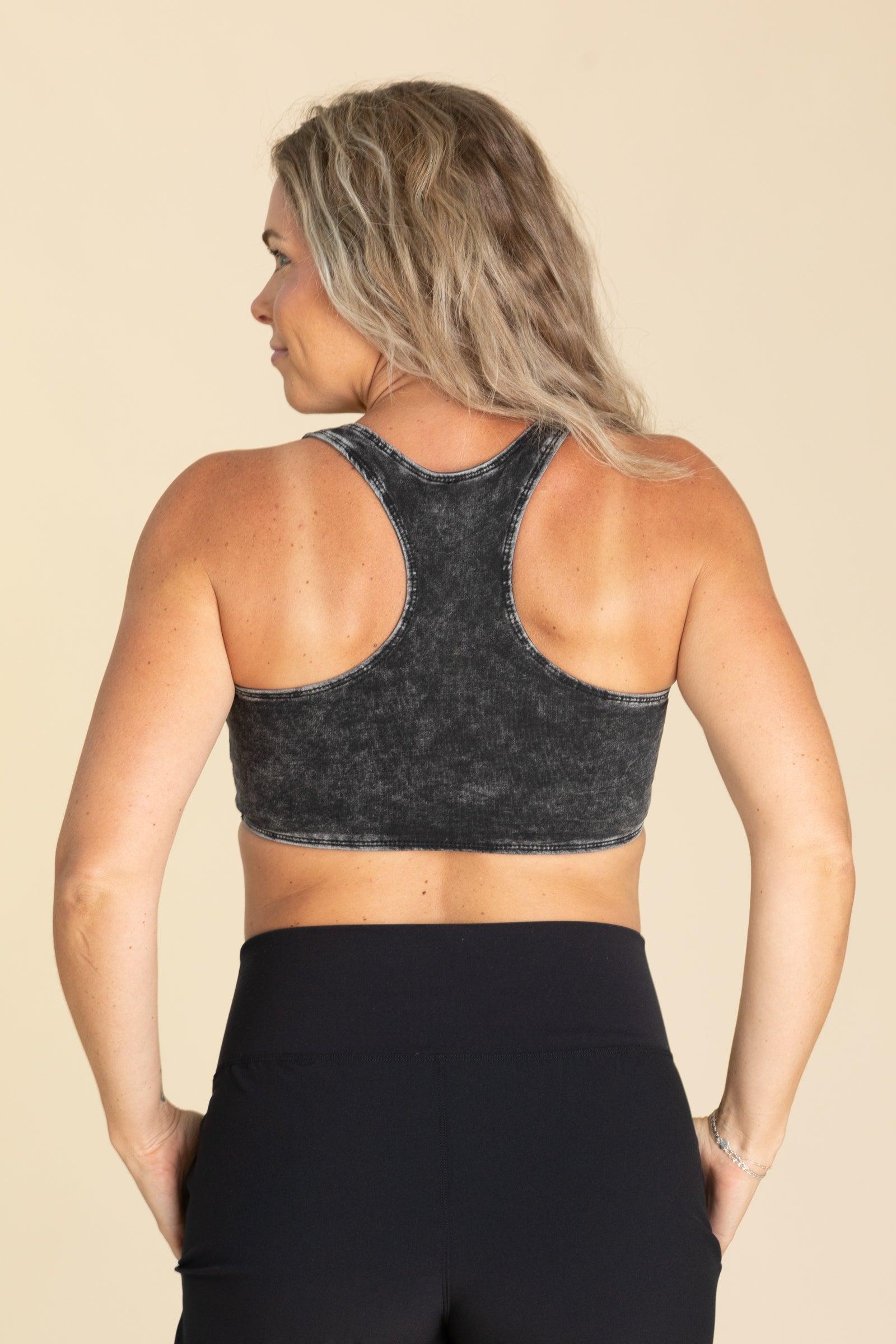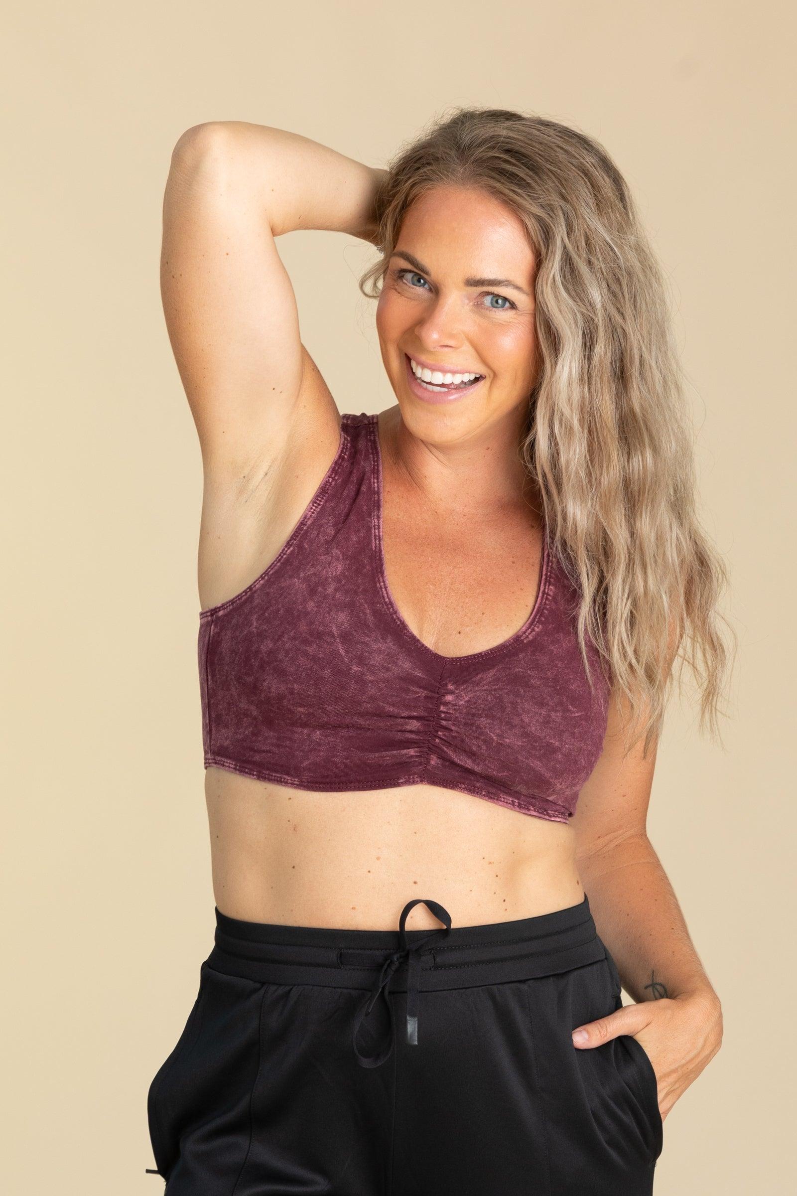 Product Details Colors: Black/ Plum/ Red Clay Print: Mineral Washed Neckline: V-Neck Sleeve: Sleeveless Brand: Mono B Material and Care 92% Cotton 8% Spandex Machine Wash Cold Tumble Dry Low Size and Fit Small: Bust 28" Length 12" Medium: Bust 30" Length 12.5" Large: Bust 32" Length 13"